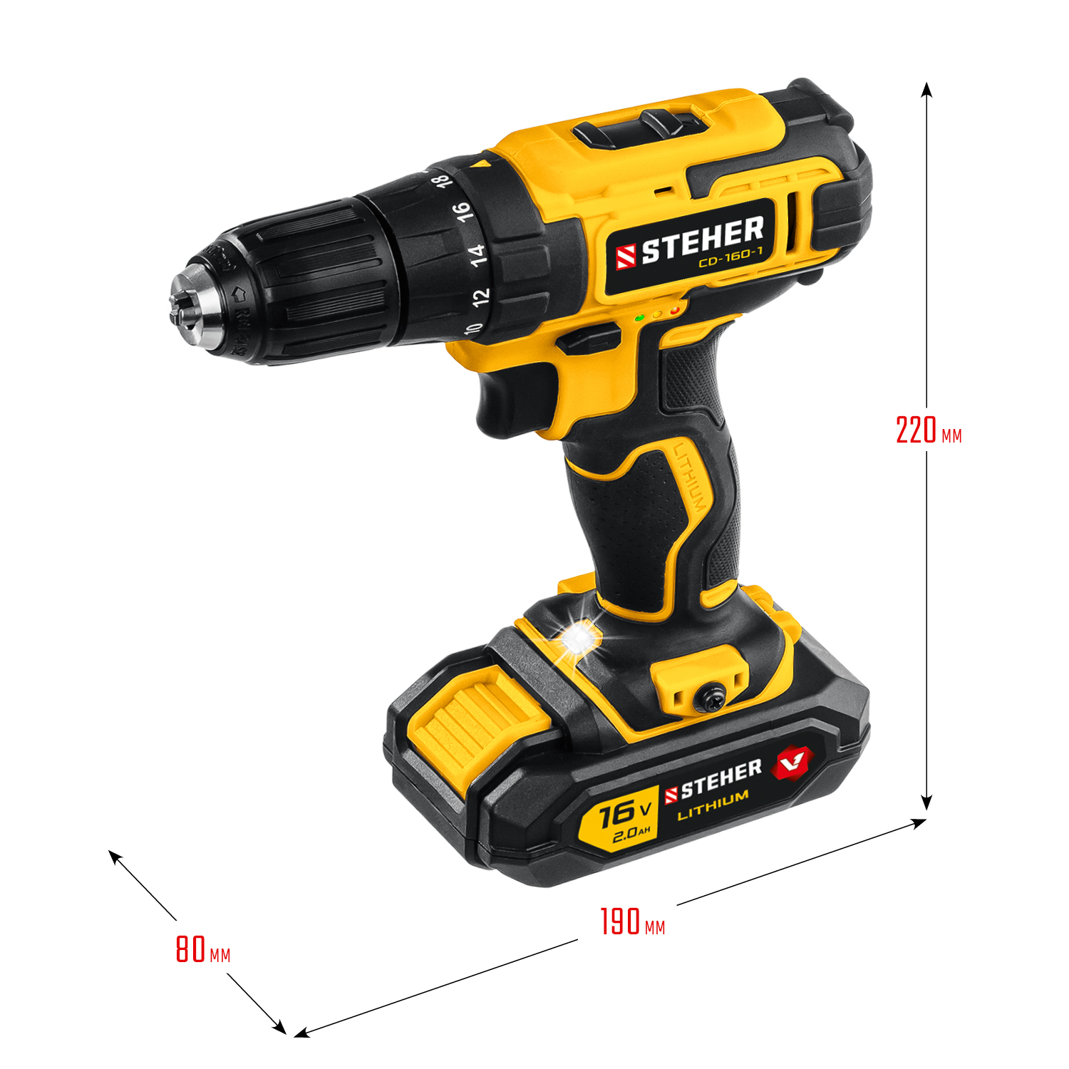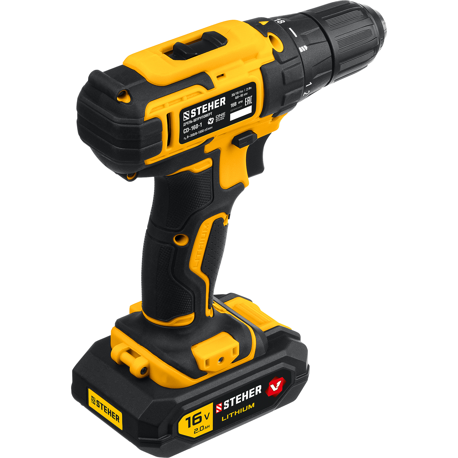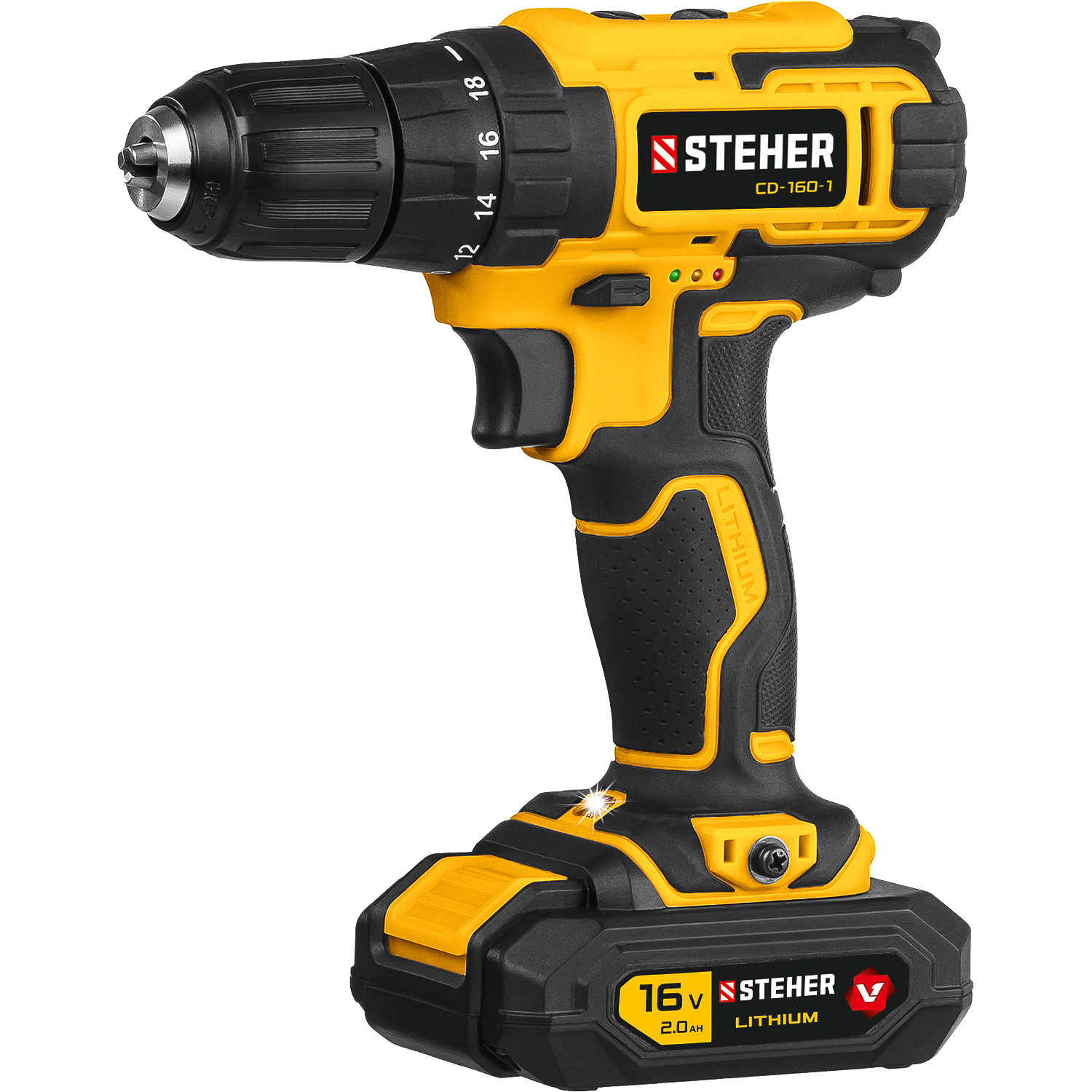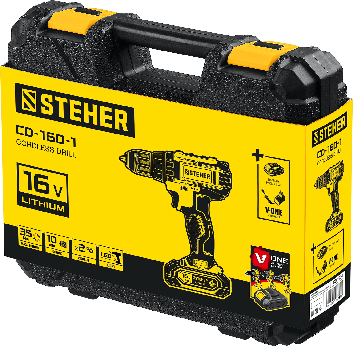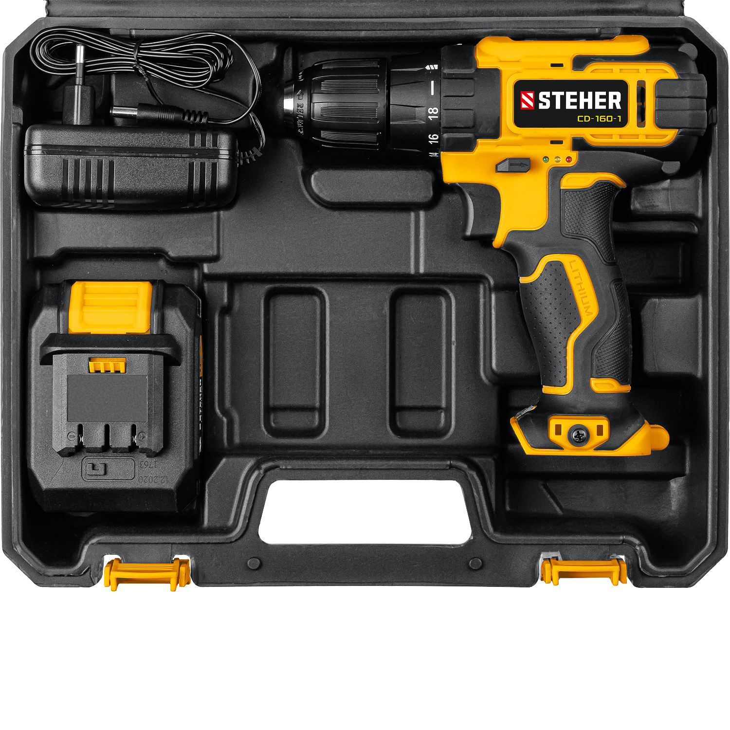 Дрель-шуруповерт, 1 АКБ (2 Ач), в кейсе CD-160-1 STEHER