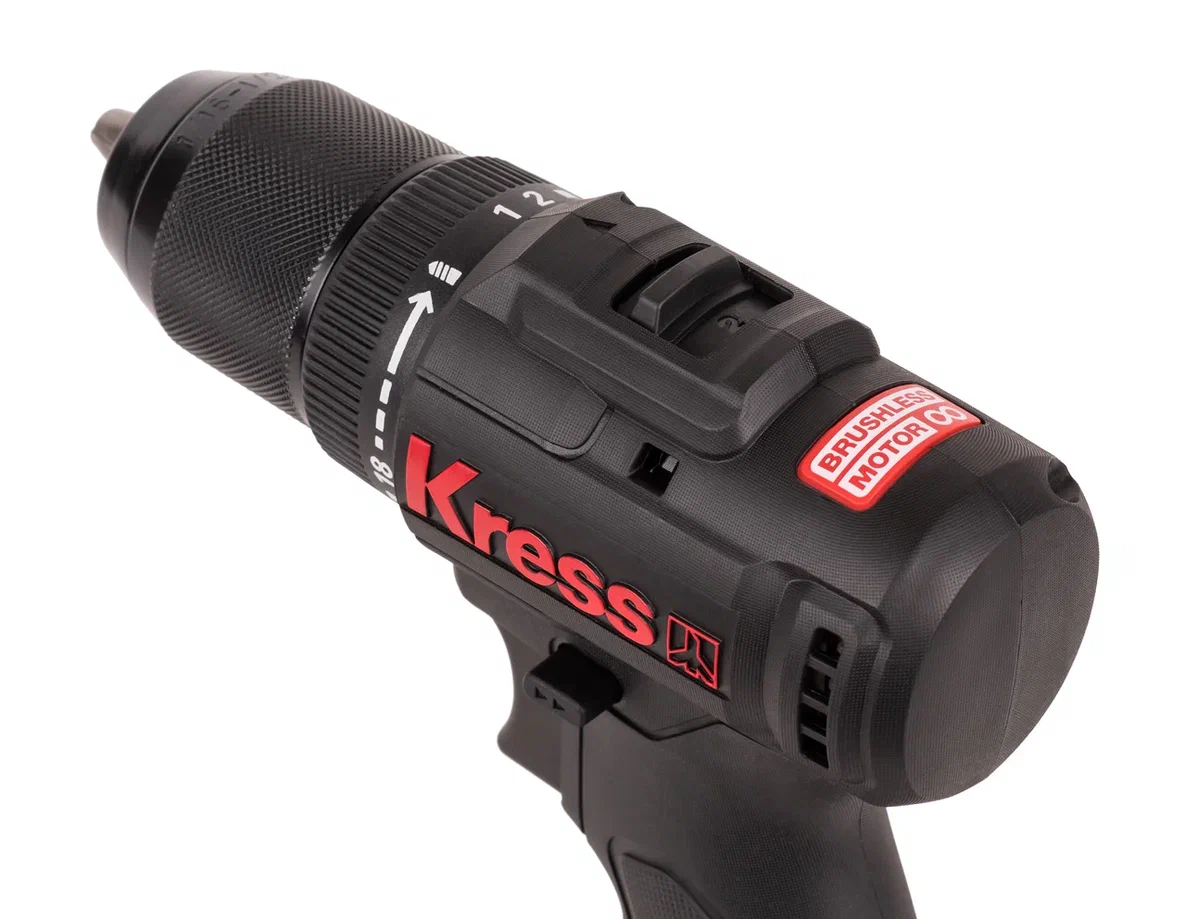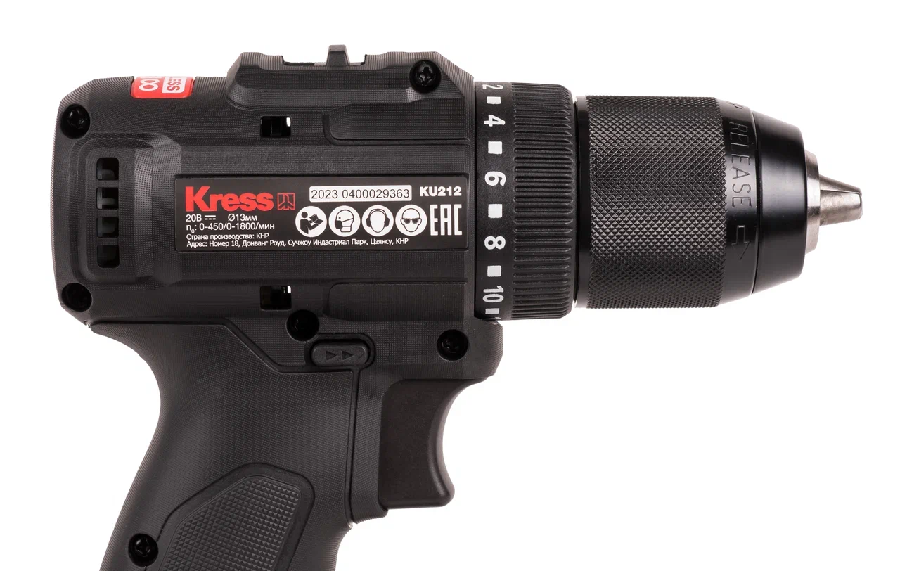 KRESS KU212.1 - это универсальная, безударная, компактная и легкая дрель-шуруповёрт c инновационным бесщеточным двигателем. Который значительно улучшает характеристики устройства по сравнению с щеточной моделью. А именно благодаря такому типу мотора дрель-шуруповёрт меньше нагревается, работает до 50% дольше и имеет на 25% больше крутящий момент. А самое главное срок службы мотора до 10-ти раз дольше. Модель оснащена быстрозажимным 13 мм, полностью металлическим патроном с блокировкой шпинделя - фиксация оснастки одной рукой. А также 2 рабочие скорости, одна предназначена для работы с крепежом, а вторая для сверления. Наличие муфты регулировки крутящего момента (18 + 1 позиций ступеней) позволит максимально точно выбрать режим работы. Дрель оснащена светодиодной подсветкой рабочей зоны. Поставляется в комплекте с 2-мя аккумуляторами KRESS KROSSPACK® 20В 2 А*ч, которые взаимозаменяемы с другими инструментами KRESS. Аккумуляторы KRESS оснащены электронной платой управления с защитой от глубокого разряда и перегрева, что продлевает срок службы и увеличивает время работы. Технические характеристикиТип двигателя: Бесщеточный.Напряжение аккумулятора: 20 В. Скорость без нагрузки: 0-450/0-1800/мин Диаметр патрона: 13 мм, металлический, замена бит без ключа Максимальная ширина сверления: Сталь: 13 мм/ Дерево: 35 мм Количество аккумуляторов в комплекте: 2. Max крутящий момент: 50 Нм. Число ступеней крутящего момента: 18 +1 Число скоростей: 2. Наличие удара: нет. Наличие подсветки: есть. Емкость аккумулятора: 2 А*ч. Тип аккумулятора: Li-lon. Вес устройства без АКБ: 1,2 кг.
