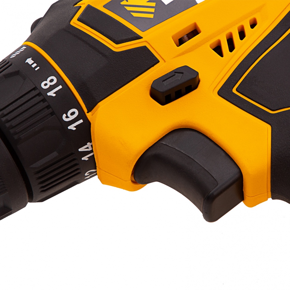- 18+1 ступень регулировки — дрель-шуруповерт удобно настроить под материалы разной жесткости и получить высококачественный результат.
