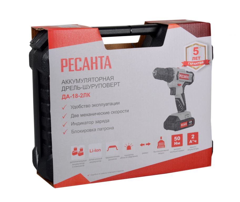Дрель-шуруповерт аккумуляторная ДА-18-2ЛК Ресанта