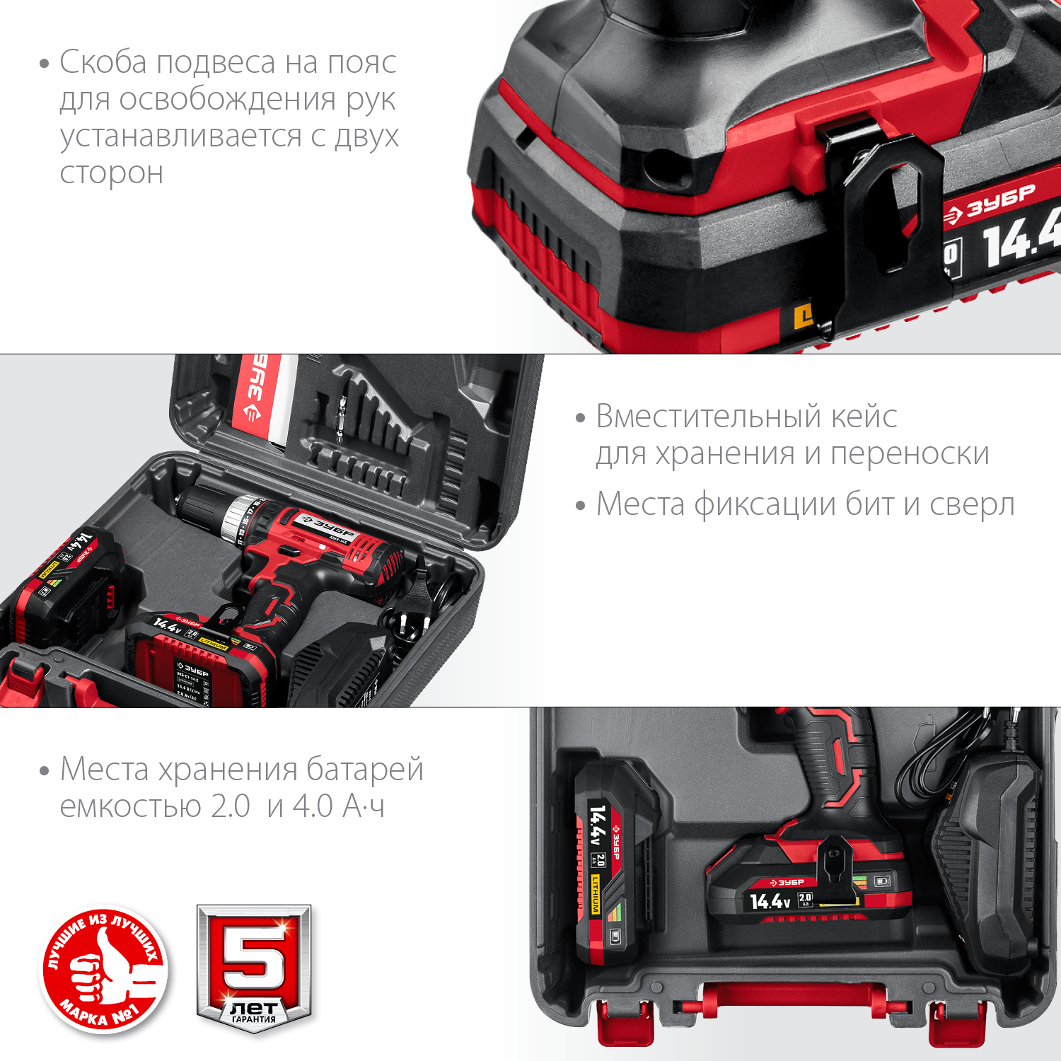 - Скоба для крепления на поясе, устанавливаемая с любой стороны инструмента