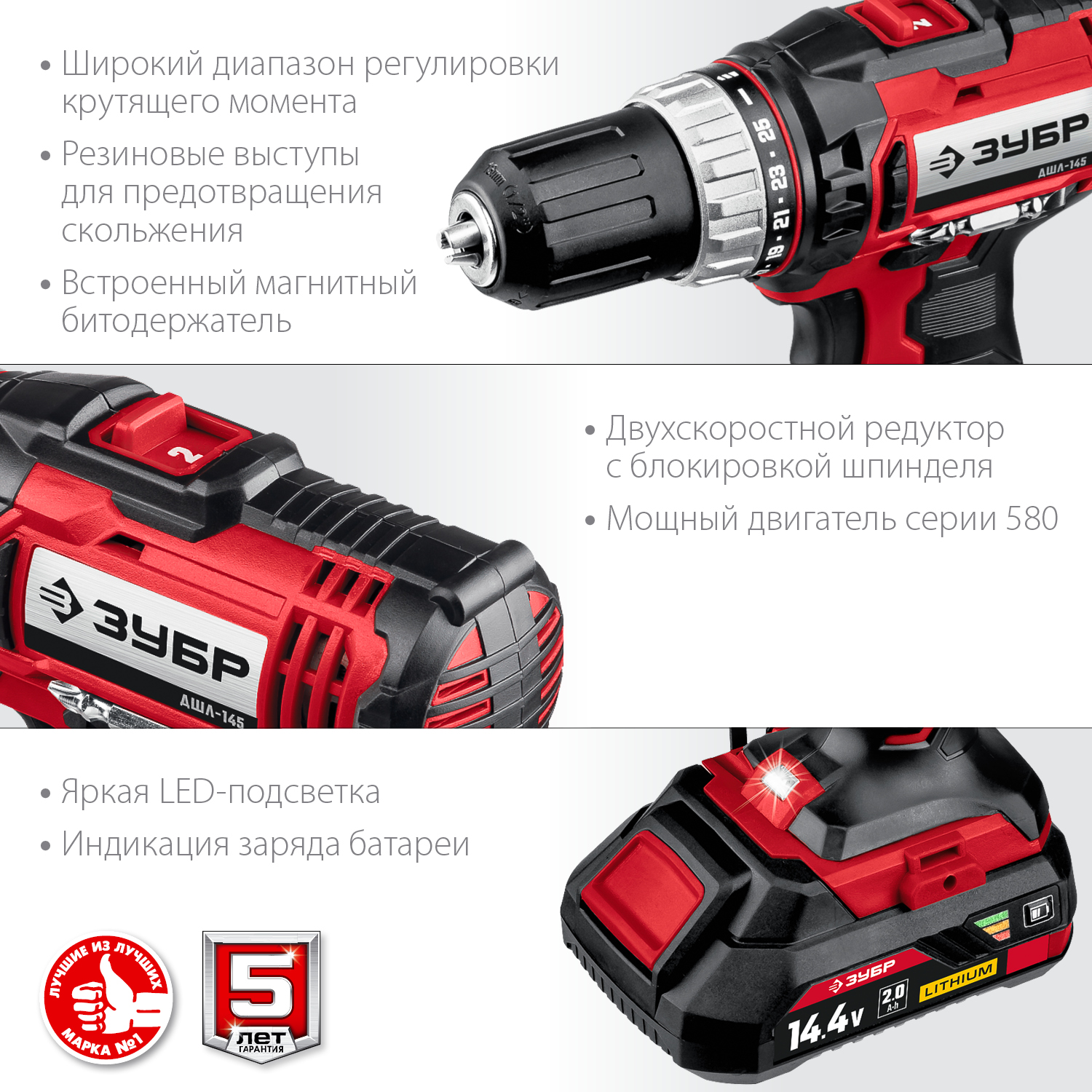 - Широкий диапазон регулировки крутящего момента превращает изделие в универсальный инструмент: от аккуратного закручивания маленьких винтиков до заворачивания крупных саморезов