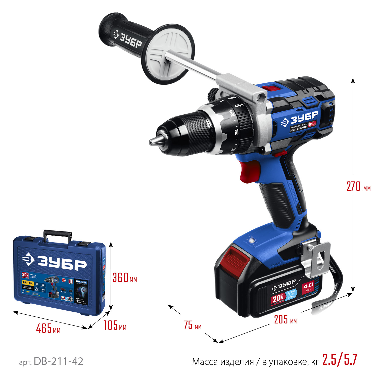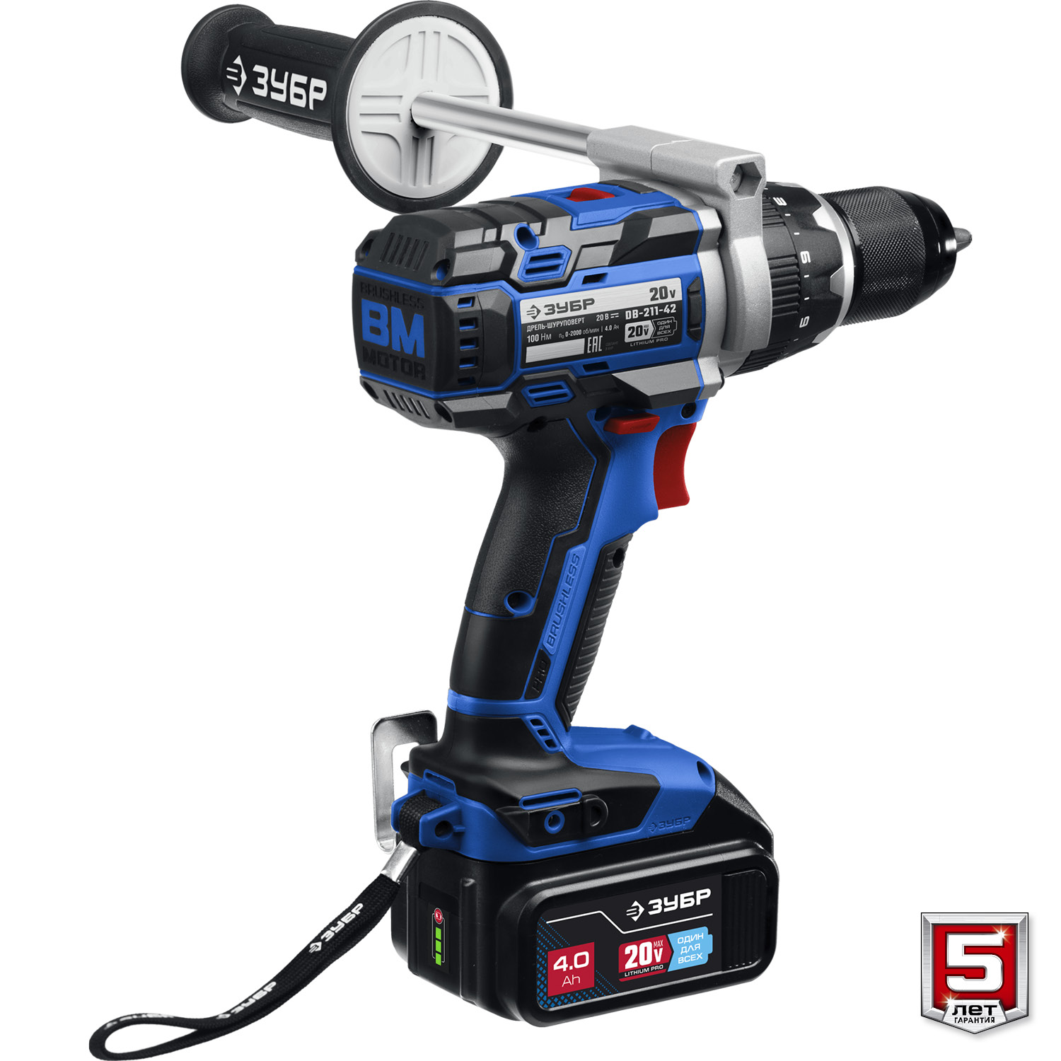 Дрель-шуруповерт аккумуляторная ЗУБР Т7, 20 В, 100 Н·м, 2 АКБ (4 А·ч)