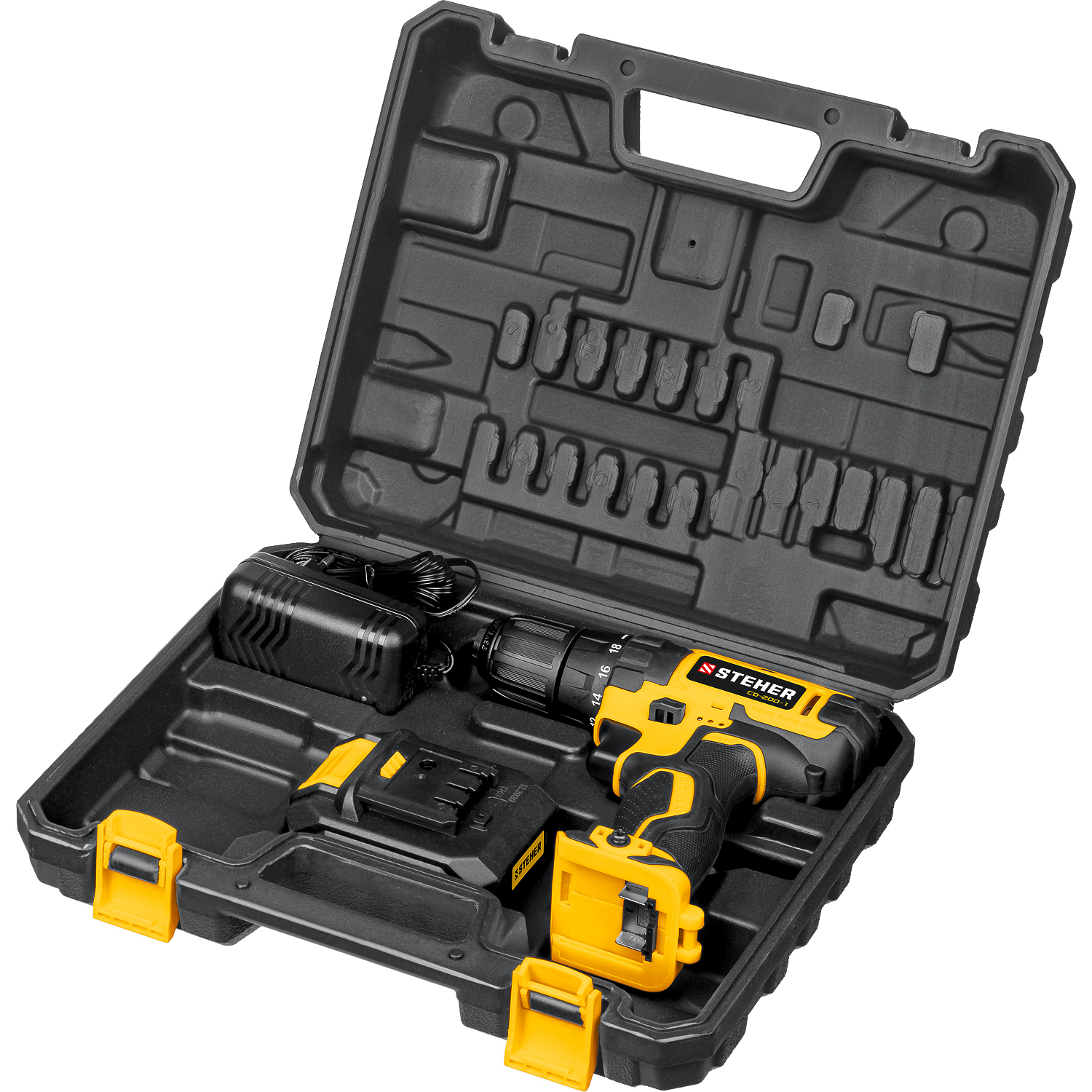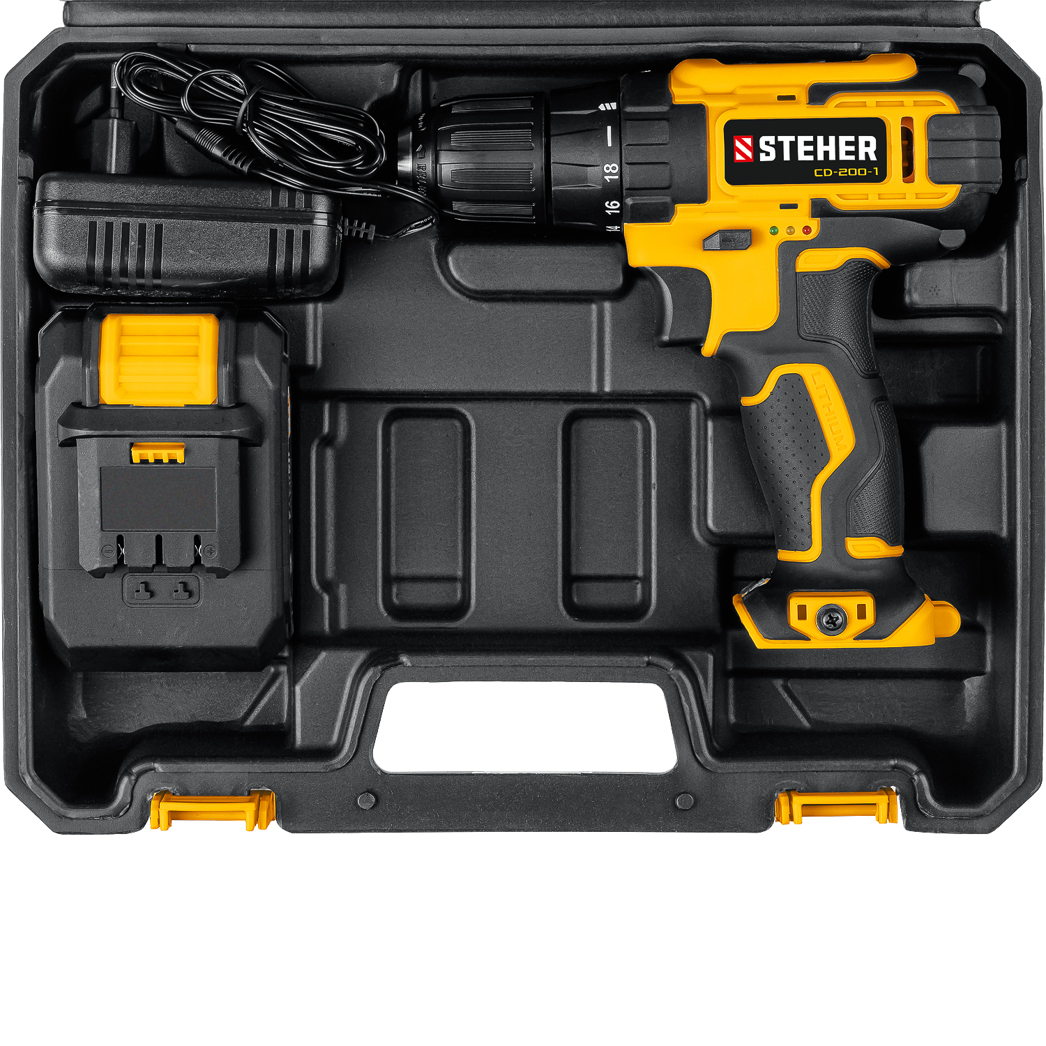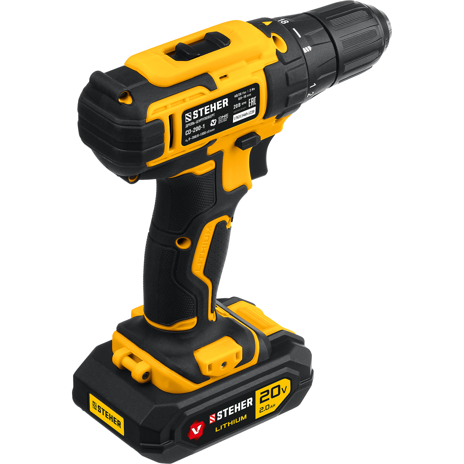 Дрель-шуруповерт CD-200-1 STEHER V1, 20 В, 40 Н·м, 1 АКБ (2 А·ч) кейс