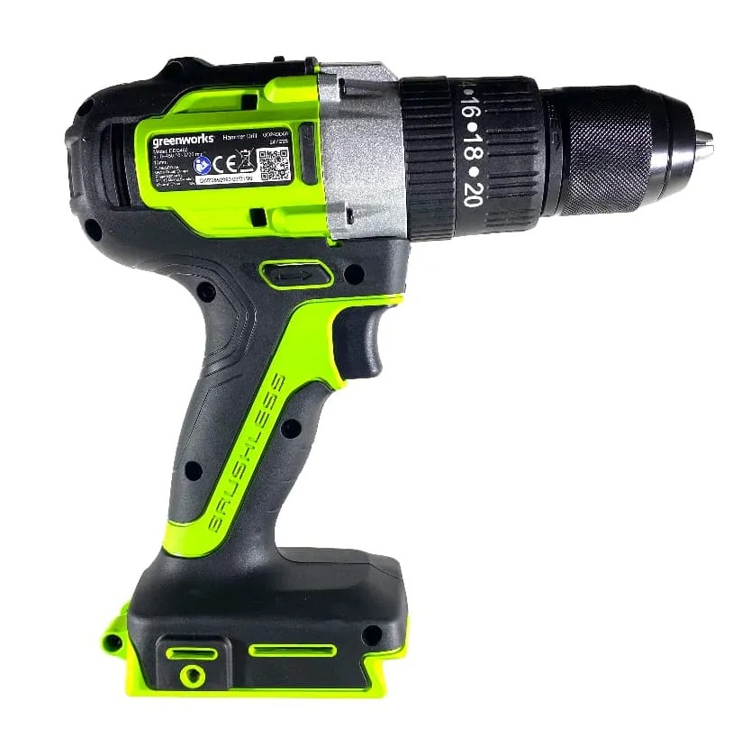 Дрель-шуруповерт ударная акк. Greenworks GD24DD60, 24V, б/щет, 0-450 / 0-1700 об/мин, 30/60Нм, без АКБ и ЗУ (3704107) Ударная дрель-шуруповерт Greenworks GD24DD60, с тремя рабочими режимами для работ в мастерской или на стройплощадке: сверление с ударом (ударная дрель), сверление без удара и заворачивание/отворачивание метизов.
