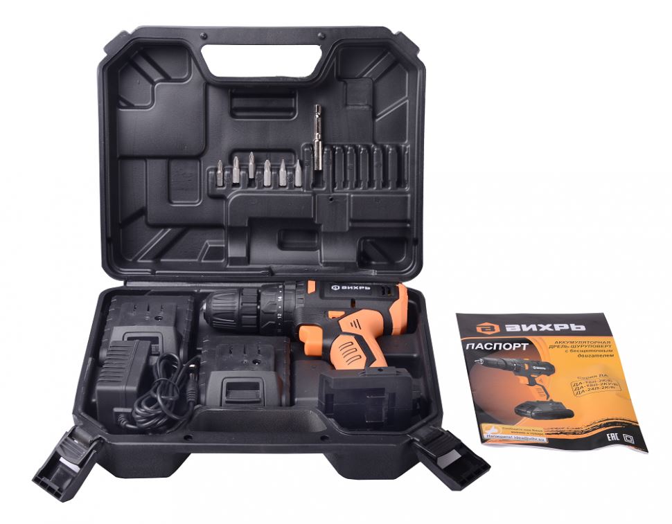 Дрель-шуруповерт Вихрь ДА-18Л-2К/Б (бесщеточный двигатель)
