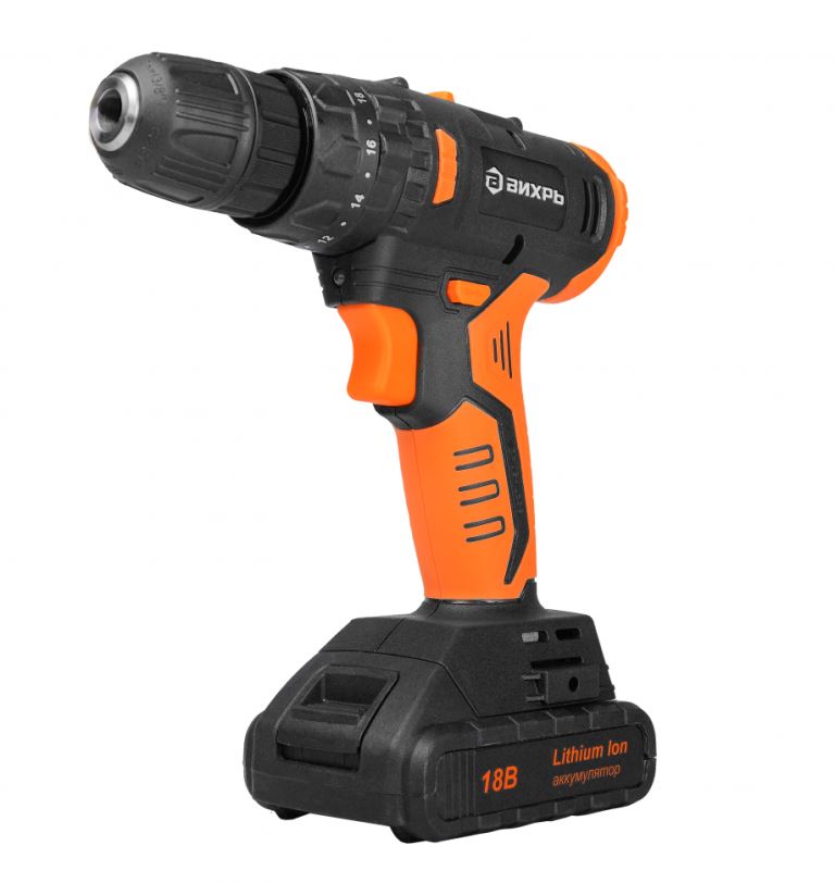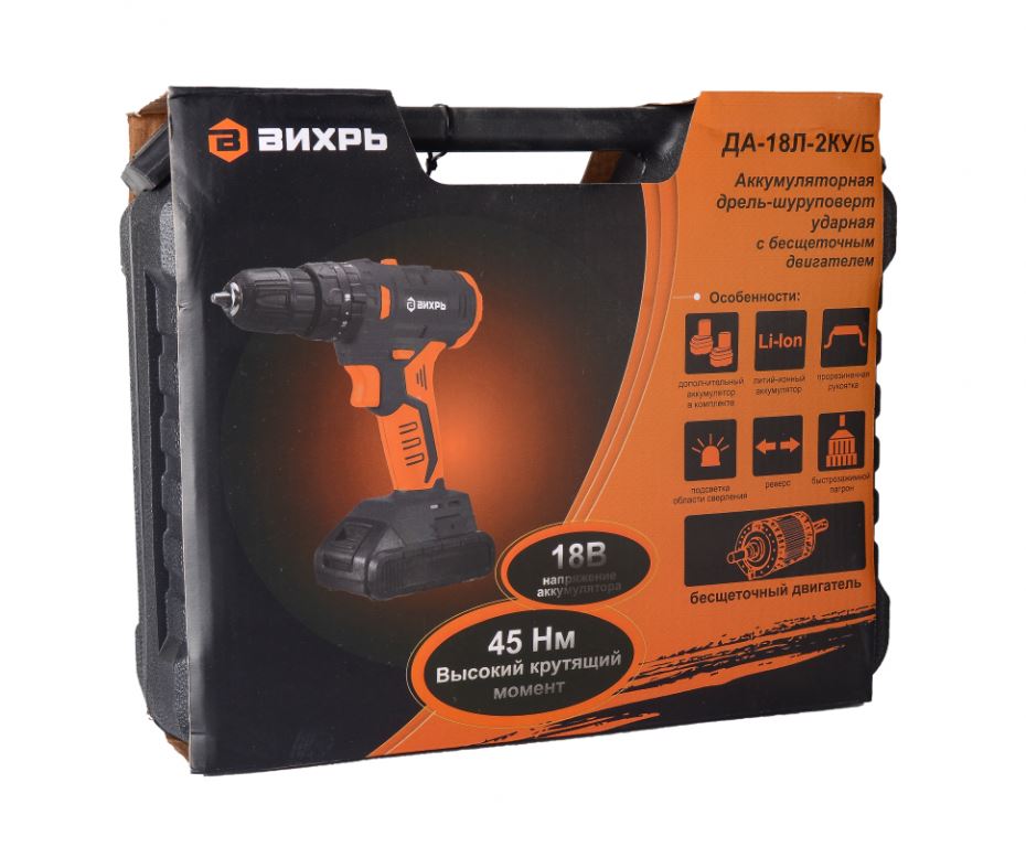 Дрель-шуруповерт Вихрь ДА-18Л-2КУ/Б (бесщеточный двигатель)