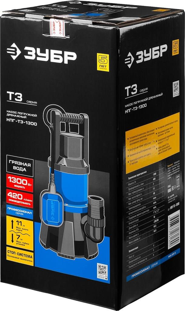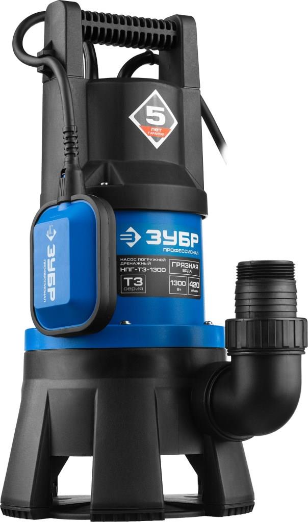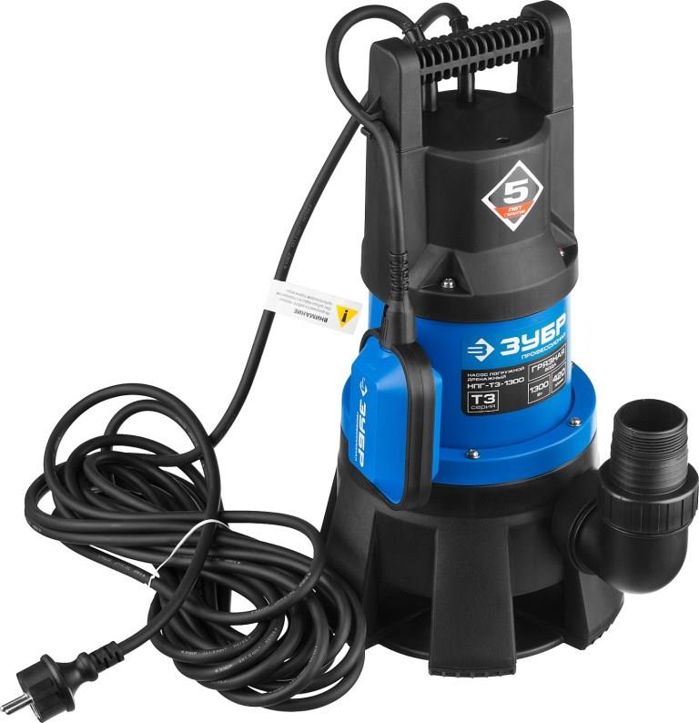 Дренажный насос для грязной воды ЗУБР НПГ-Т3-1300, 1300 Вт, Профессионал