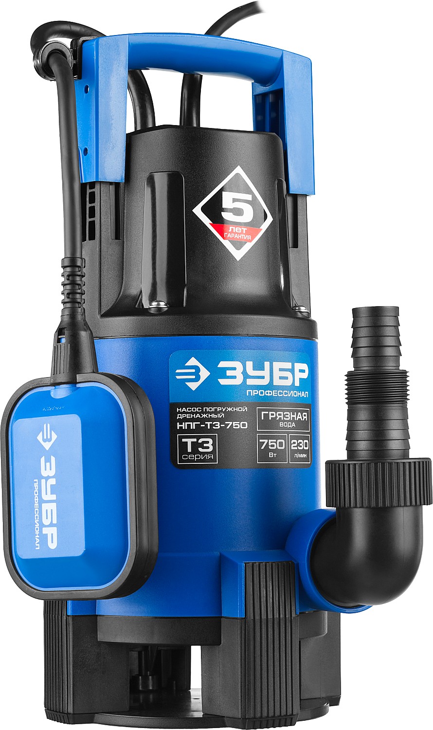 Дренажный насос для грязной воды ЗУБР НПГ-Т3-750, 750 Вт, Профессионал