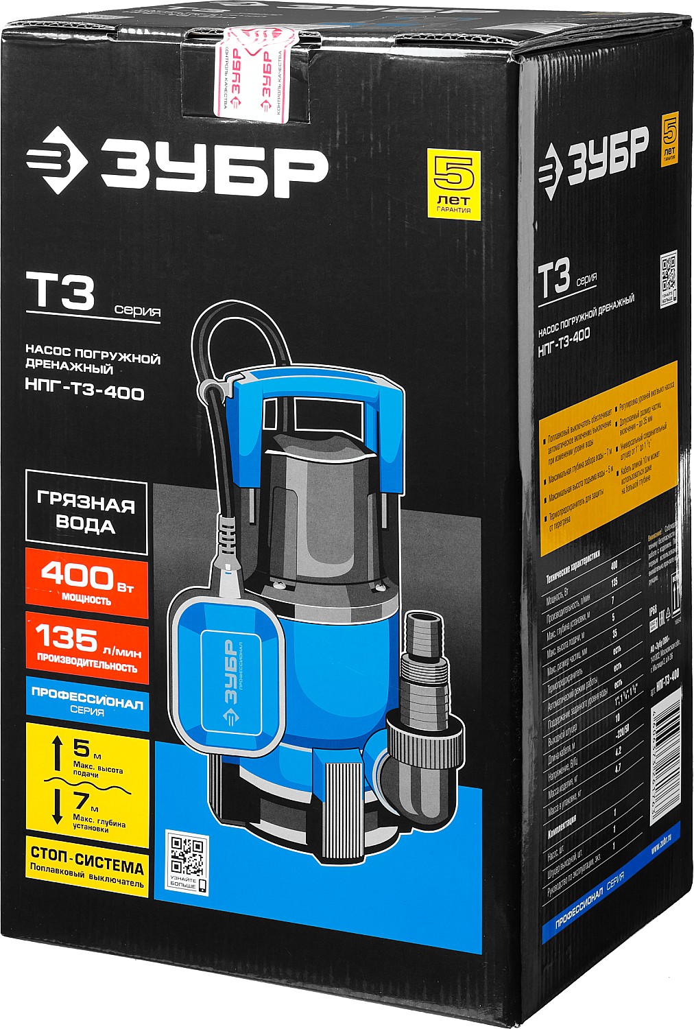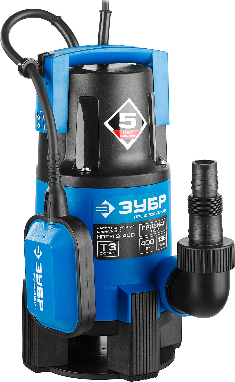 Дренажный насос для грязной воды ЗУБР НПГ-Т3-400 серия «ПРОФЕССИОНАЛ»