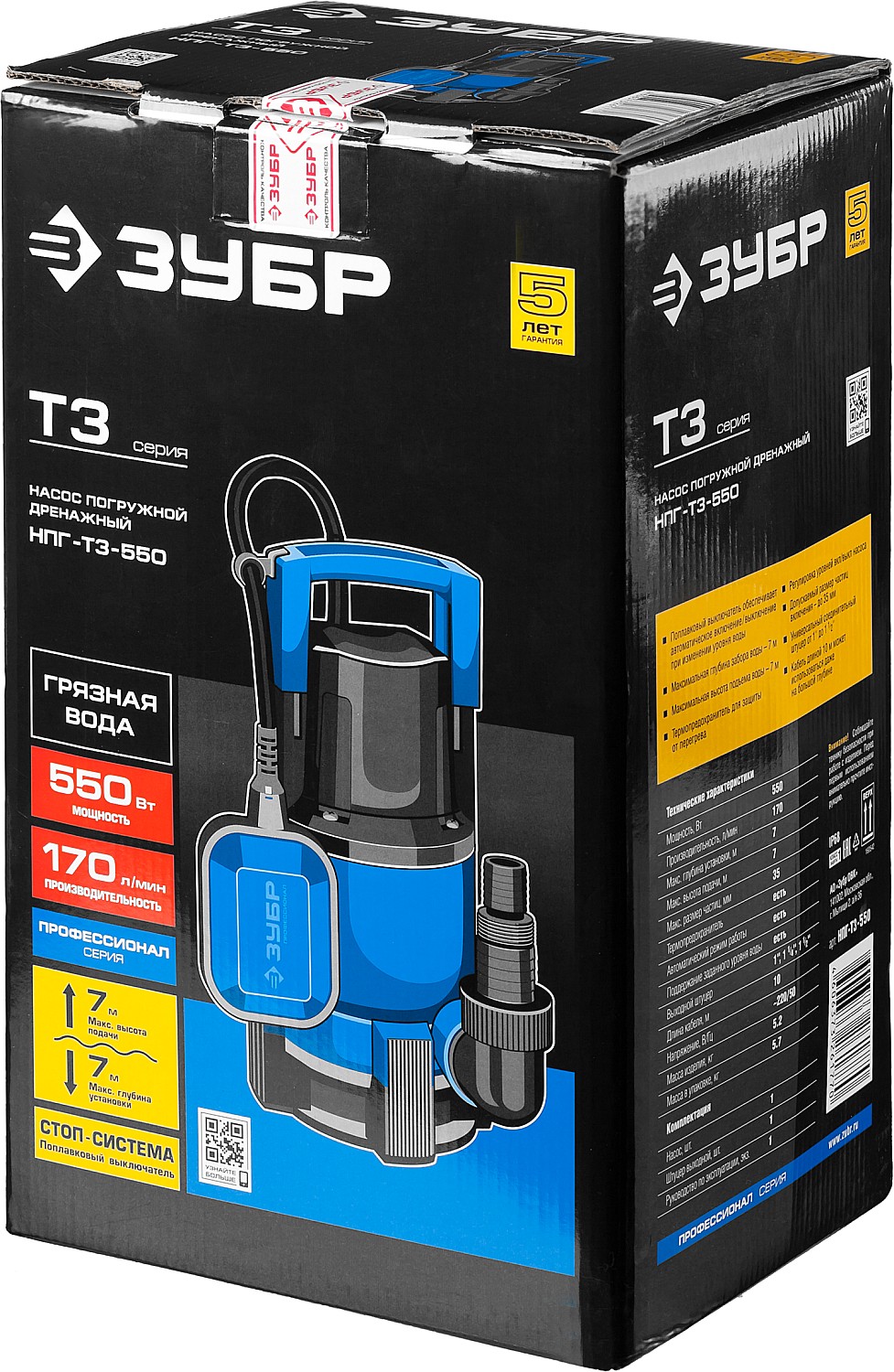 Дренажный насос для грязной воды ЗУБР НПГ-Т3-550 серия «ПРОФЕССИОНАЛ»