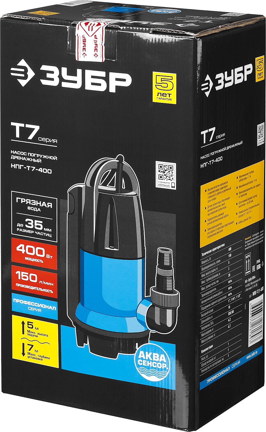 Дренажный насос для грязной воды ЗУБР НПГ-Т7-400 серия «ПРОФЕССИОНАЛ»