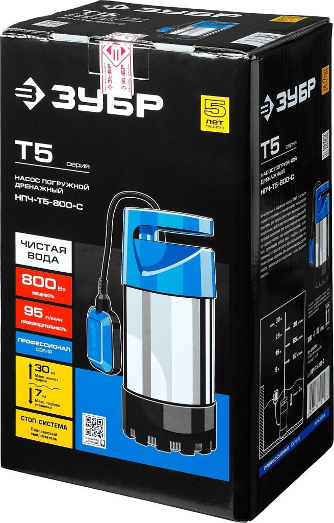 Дренажный насос ЗУБР НПЧ-Т5-800-С, с большим напором, 800 Вт, Профессионал