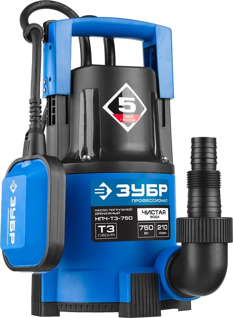 Дренажный насос ЗУБР НПЧ-Т3-750 с минимальным уровнем откачки, 750 Вт, Профессионал