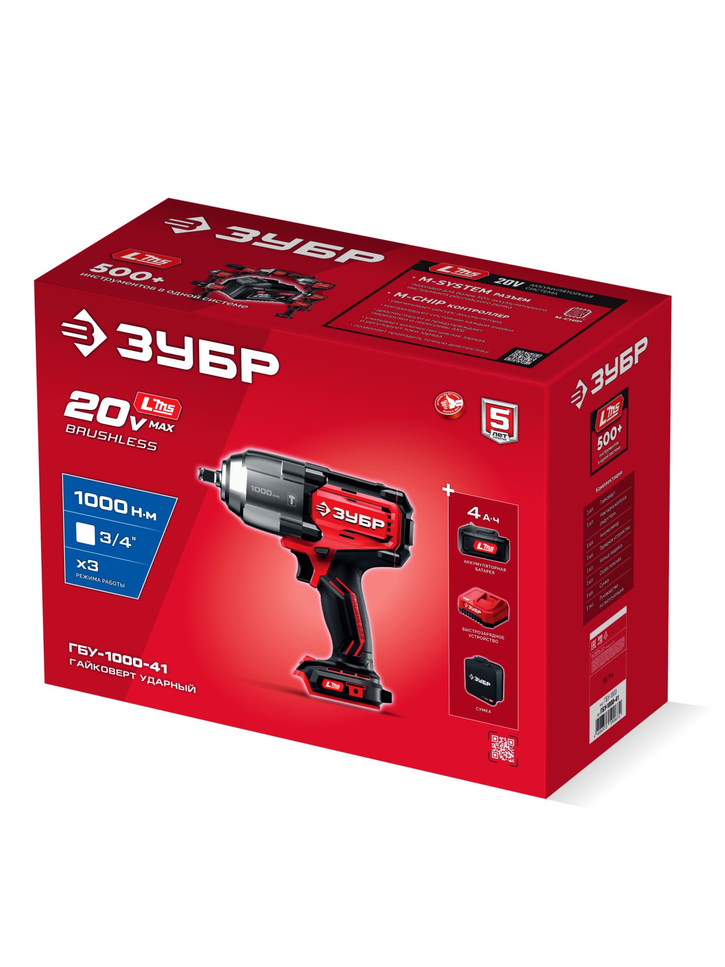 Бесщеточный ударный гайковерт ЗУБР 20 В, 1000 Н·м, 1 АКБ LMS (4 А·ч)
