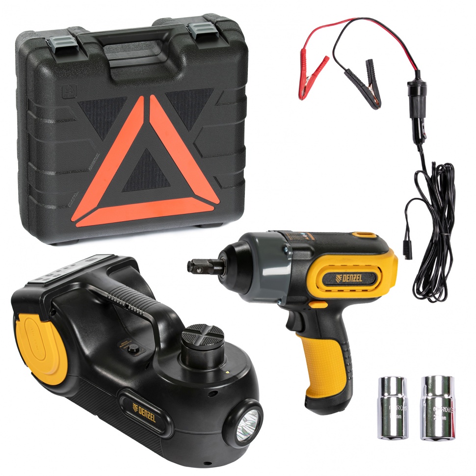 Домкрат электрогидравлический «3 в 1» (1,5 т), 12В, с гайковертом электрическим, в наборе Denzel