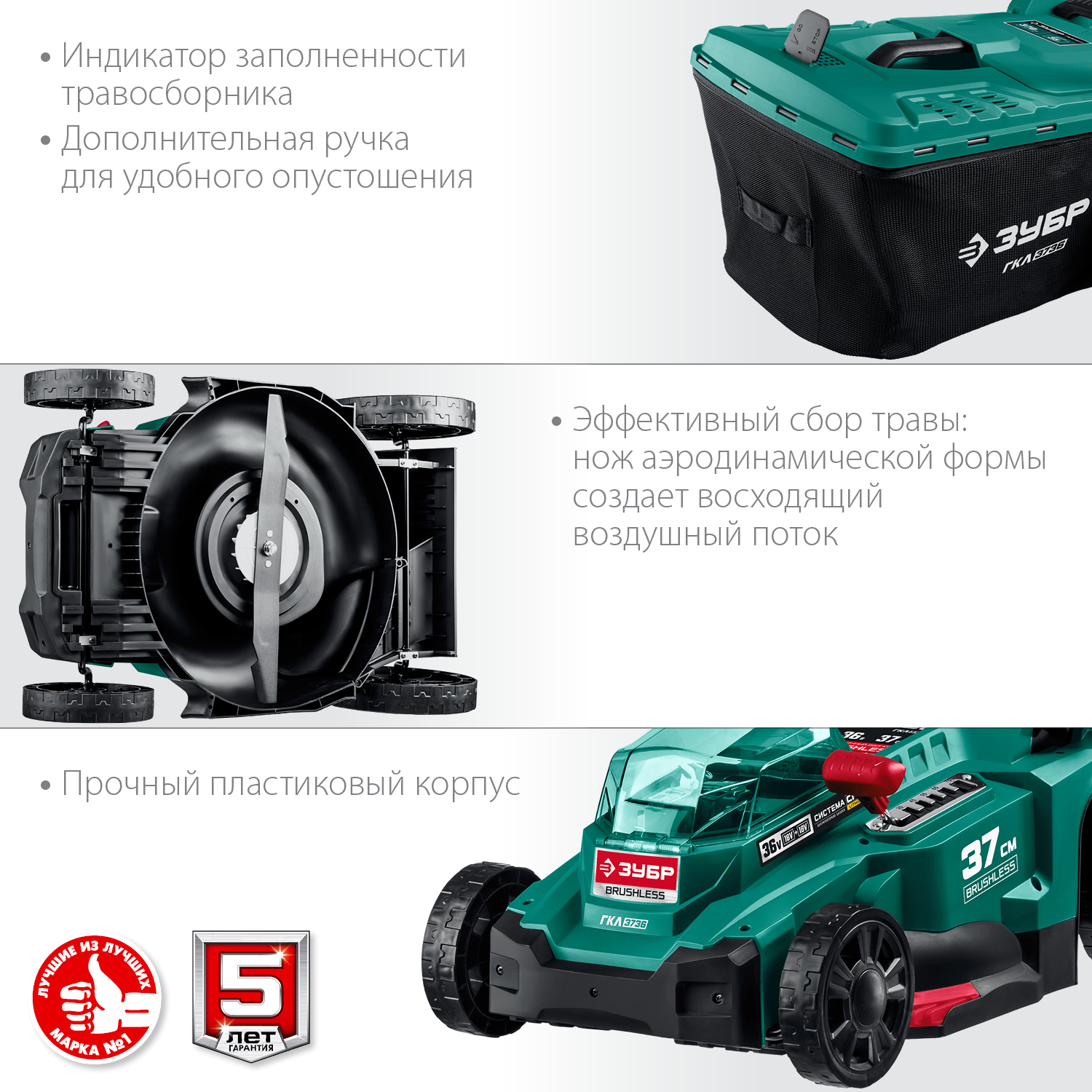 - Мощный двигатель напряжением 36 В ускоряет процесс обработки, а оптимальная ширина кошения снижает нагрузку, что увеличивает ресурс изделия