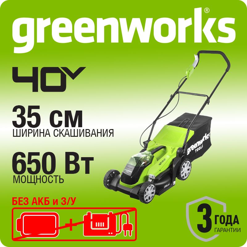 Газонокосилка аккумуляторная Greenworks G40LM35, 40V, 35 см, без АКБ и ЗУ 2501907