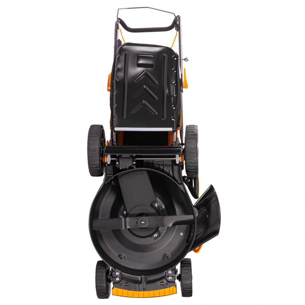 Продуманная конструкция и стильный дизайн: оптимизированная форма деки способствует лучшему всасыванию травы, а матовая краска придает эффектности.