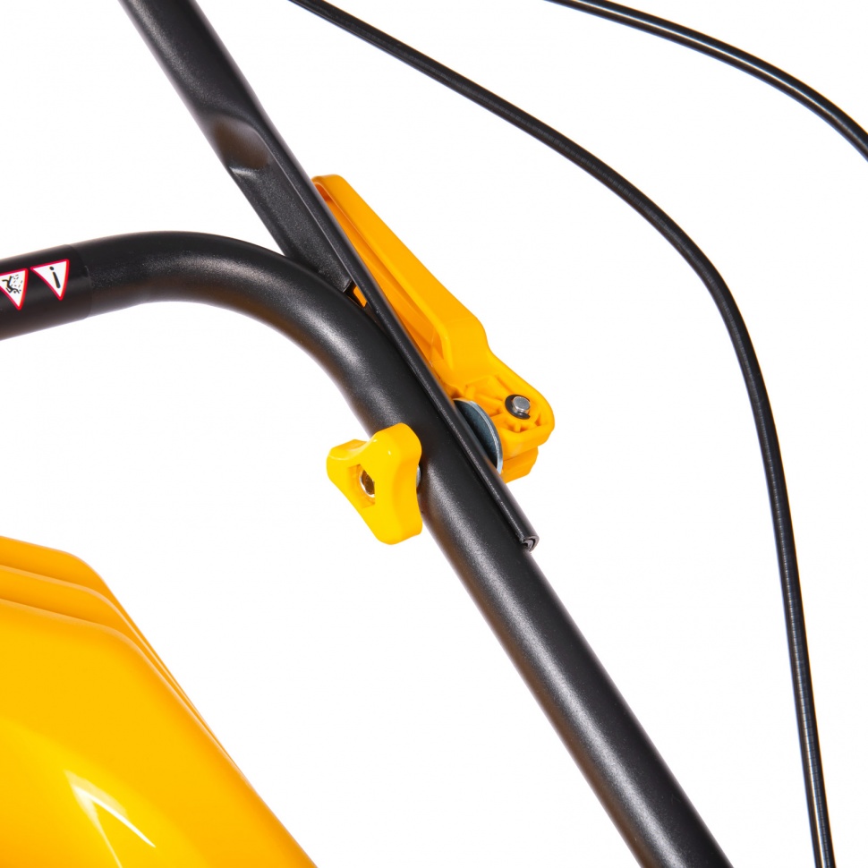Система складывания: эксцентриковые фиксаторы быстро сжимаются и разжимаются, что позволяет за несколько минут сложить рукоятку и разместить косилку в нужном месте.