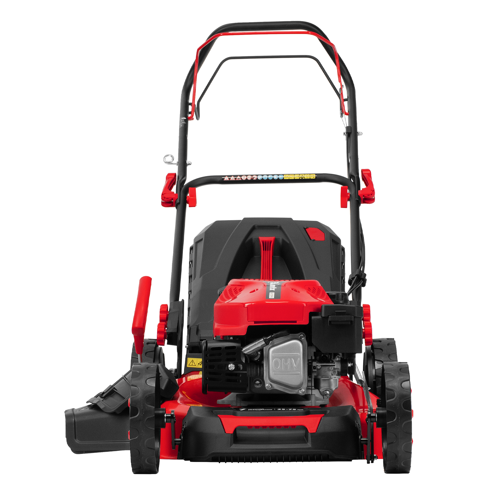 - Простая регулировка высоты скашивания — достаточно изменить положение рычага, переставлять колеса не требуется.