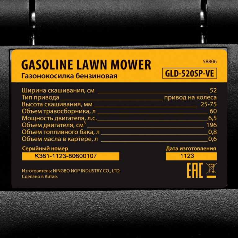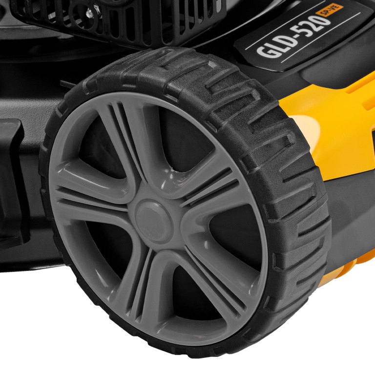 Создать садово-парковый, спортивный, партерный или другой вид газона легко с моделью GLD-520SP-VE. Машина мощностью 6,5 лошадиных сил справится даже с поросшей бурьяном территорией. За один проход она обрабатывает дорожку шириной 52 см, что позволяет скосить более 1800 кв.м за 1 час. На одной заправке удастся косить траву до 60 минут.