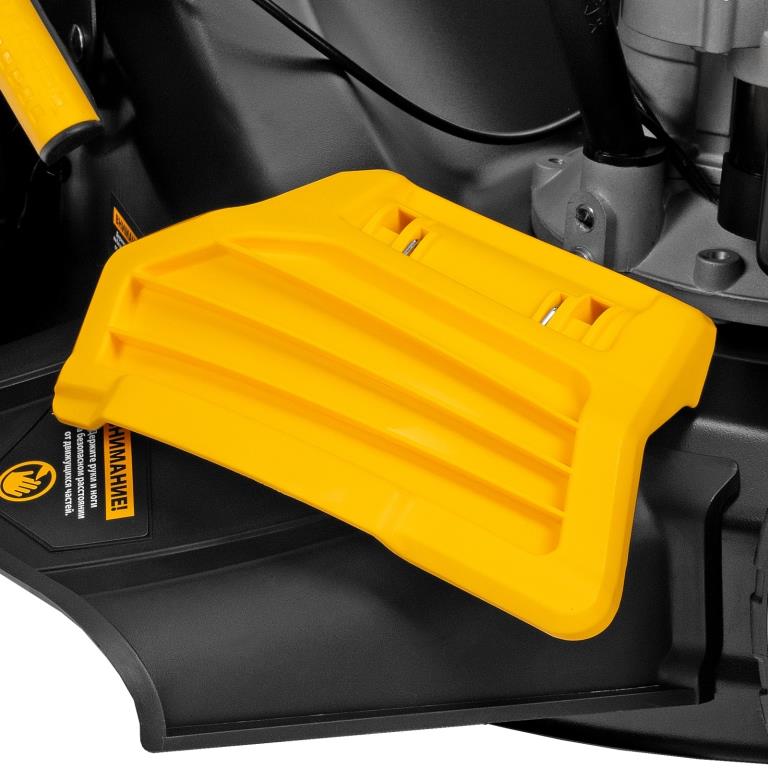 - Оптимизированная геометрия деки - прочный корпус изготовлен таким образом, чтобы срезанная трава быстрее и легче попадала в травосборник.
