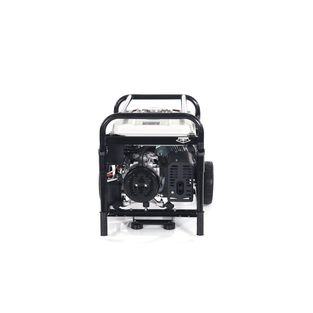 - Бензогенератор оснащен транспортировочными колесами и ручками.