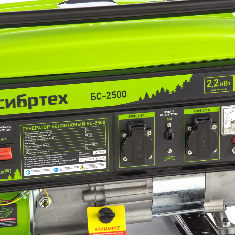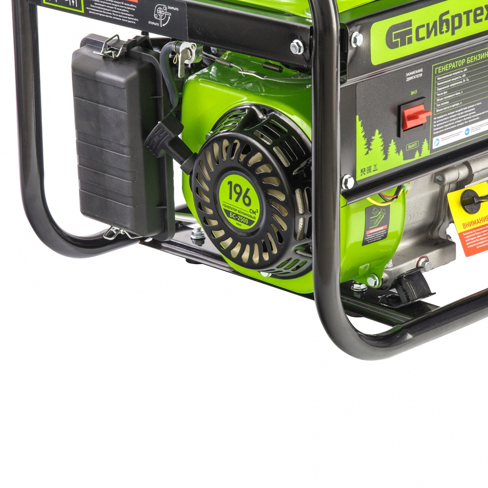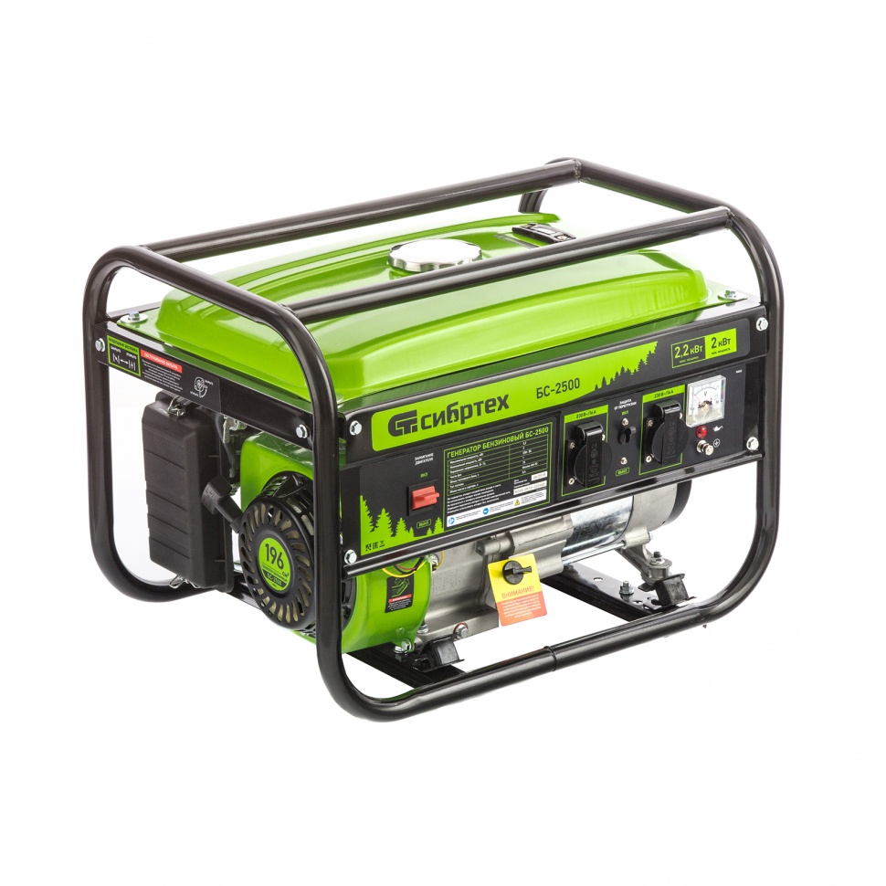 Бензиновый генератор Сибртех БС-2500 94542 на 230 В, максимальной мощностью 2,2 кВт, с 4-тактным двигателем и баком объемом 15 л, идеально подходит для использования на даче, на природе или в мастерской. Небольшой вес 34,5 кг и компактность позволяют легко перевозить и брать его с собой. Мощности 2 кВт достаточно для одновременного подключения холодильника и микроволновой печи.