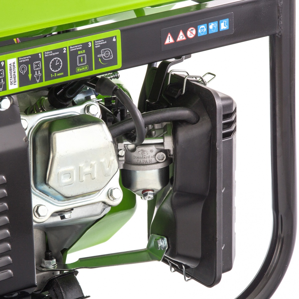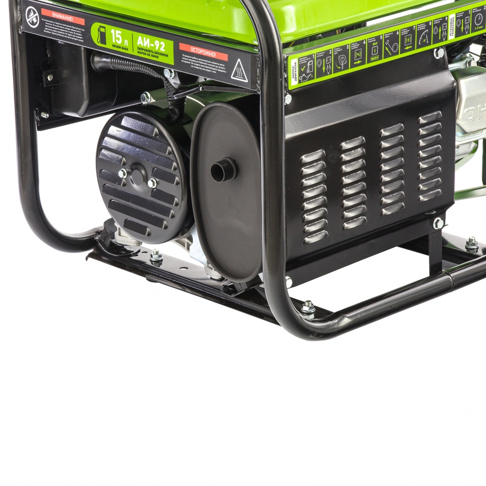 - Прочная конструкция — стальная рама надежно защищает генератор от повреждений.