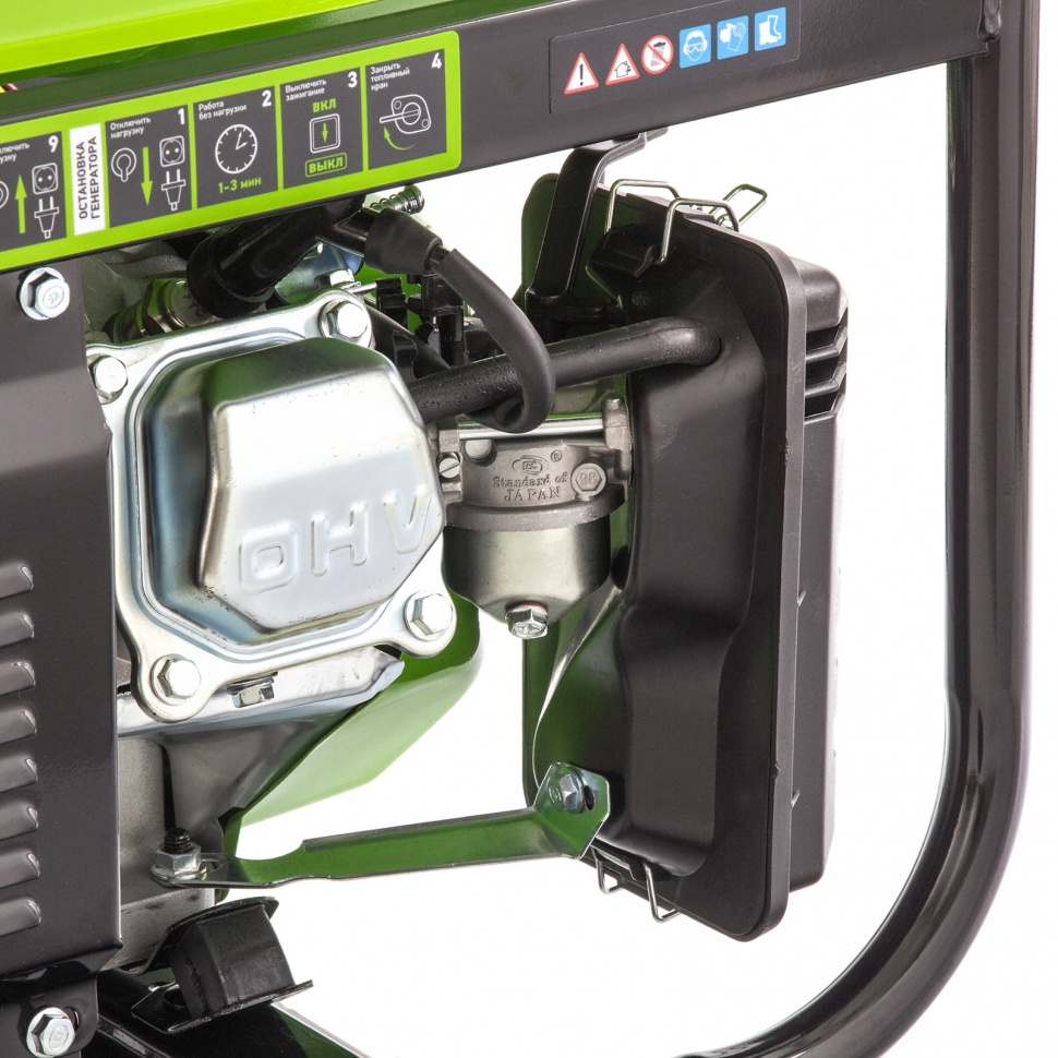 - Прочная конструкция — стальная рама надежно защищает генератор от повреждений.