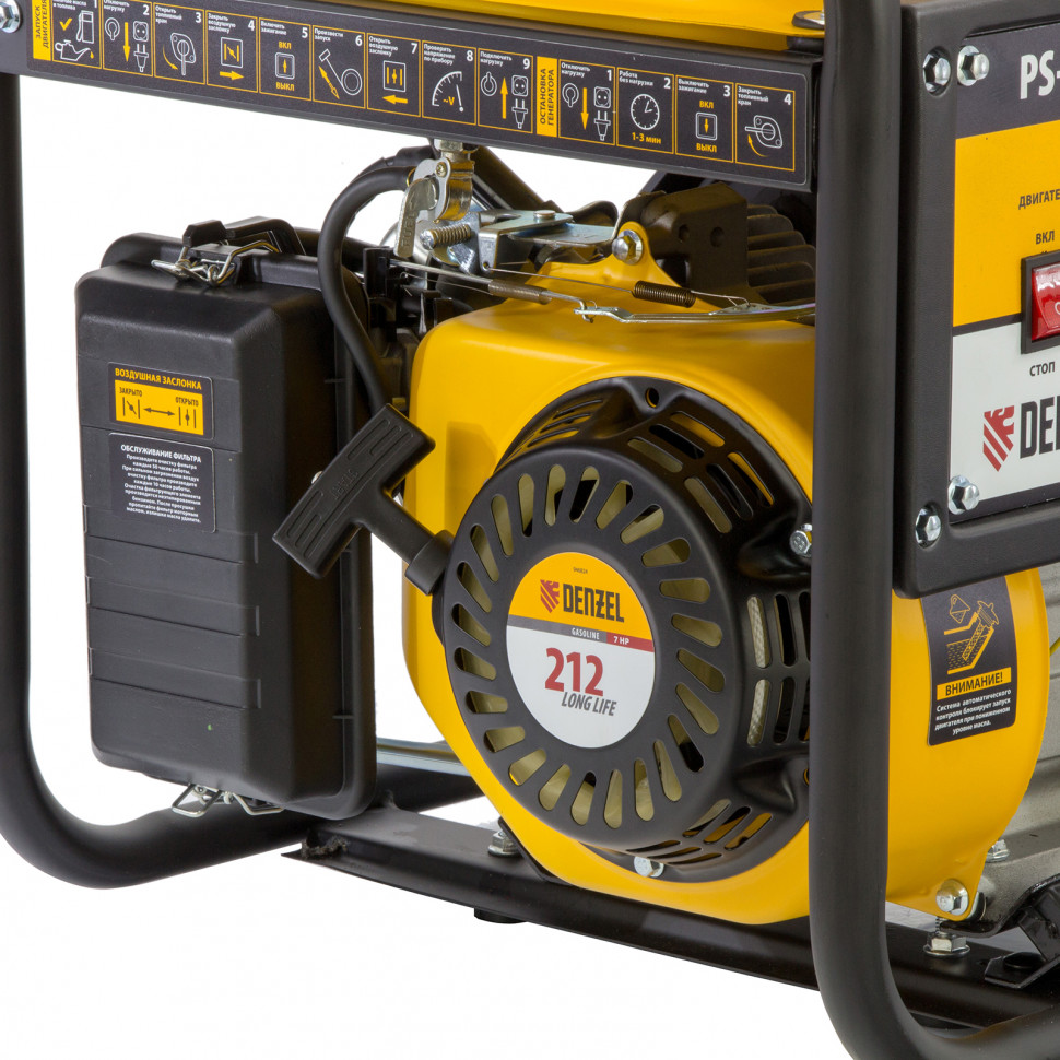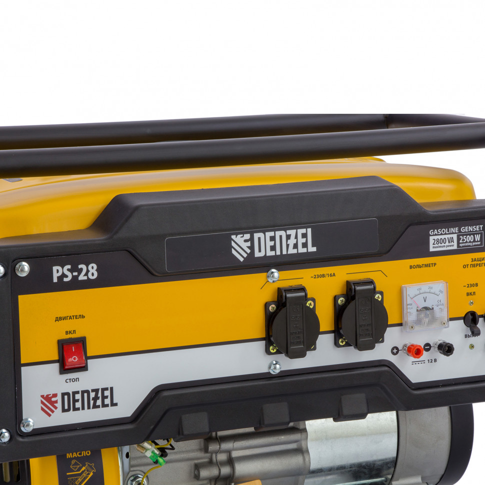 Бензиновый генератор Denzel PS 28 946824 мощностью 2,8 кВт с ручным стартером отлично подойдет для дачного участка, строительной площадки, домашней мастерской, кемпинга, рыбалки. Позволяет одновременно подключать несколько приборов, например, электрочайник, холодильник и 3 лампы дневного освещения. Благодаря увеличенному бензобаку на 15 л устройство будет работать более 12 часов без дозаправки. Экономичный и надежный четырехтактный двигатель мощностью 7 л.с. снижает выхлопы, расход топлива и уровень шума.