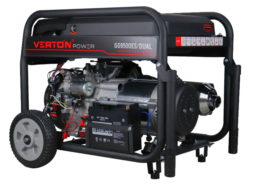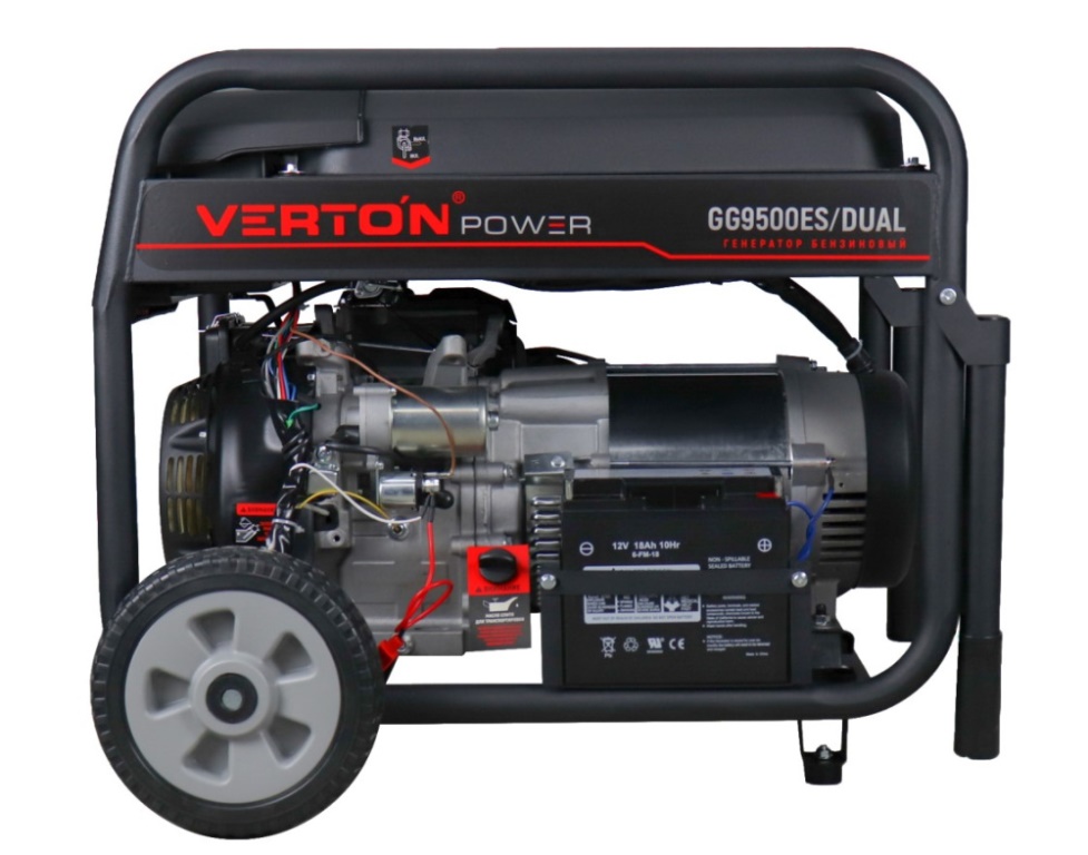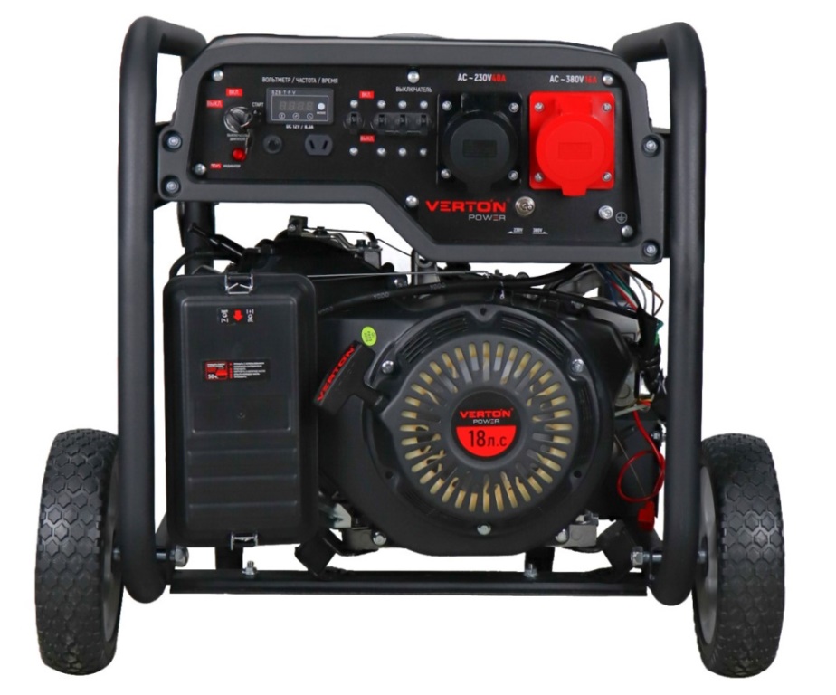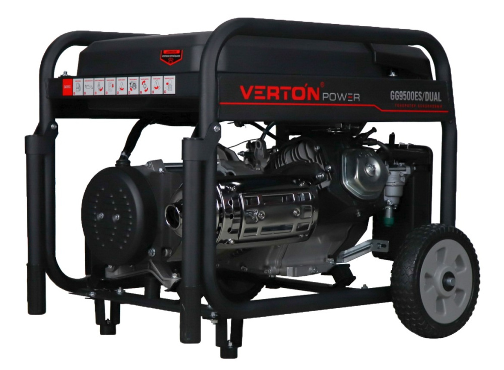 Генератор бензиновые VERTON POWER оснащен надежным двигателем с увеличенным ресурсом, медной обмоткой альтернатора и электро-запуском, транспортировочными рукоятками и обрезиненными колесами.