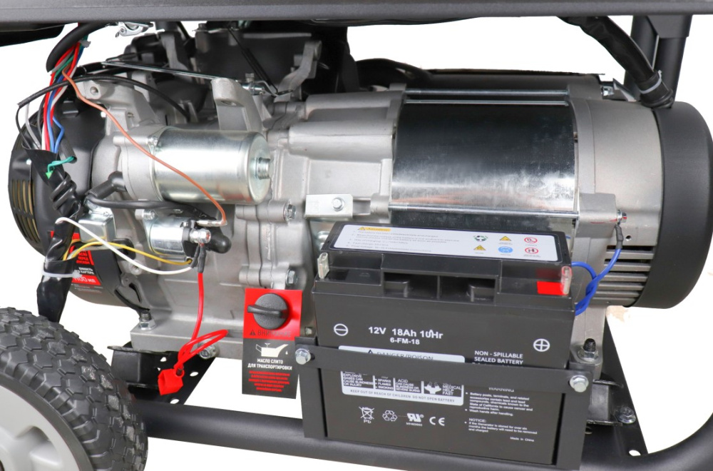 Генератор оснащен АКБ, которая не нуждается в зарядке, т. к.заряжается сама в процессе работы.