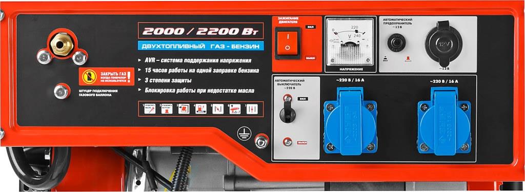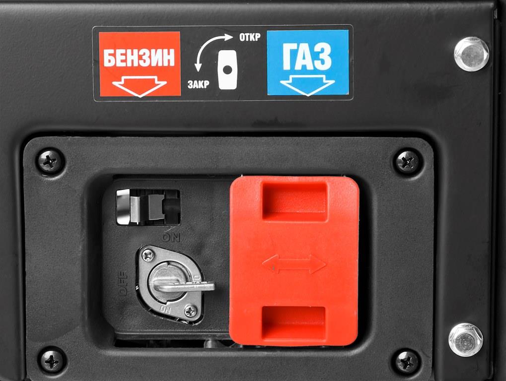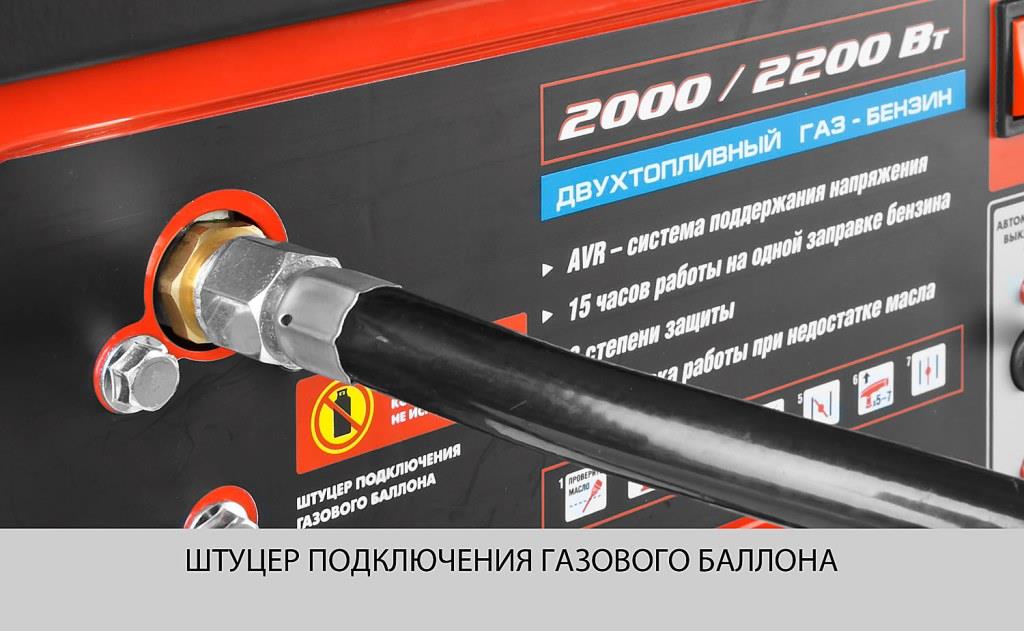 Компактный двухтопливный электрогенератор мощностью 2.2 кВт, работающих как на бензине (АИ-92), так и на газе – при этом, для использования газа не требуется установка дополнительного оборудования.