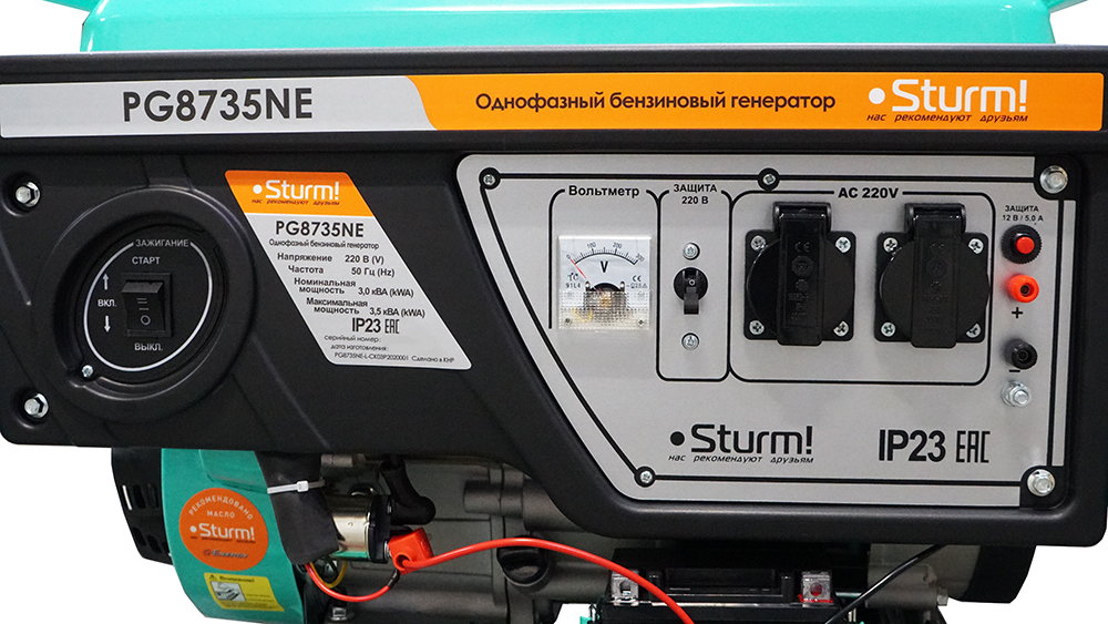 Наличие 2 евро розеток позволяет подключать сразу несколько потребителей. Выход на постоянный ток позволяет заряжать аккумуляторы и питать любые устройства требующие напряжения 12В. Защита от низкого уровня масла и защита от перегрузки останавливают двигатель предотвращая его выход из строя при внештатных ситуациях. Двигатель разработан для работы на бензине АИ-92, который можно приобрести на любой авто заправке. Коленвал двигателя выполнен из кованной стали, что увеличивает надежность двигателя. Функция AVR автоматически выравнивает и стабилизирует напряжение на выходе давая возможность подключать широкий спектр электрических устройств. Электрический стартер позволяет запускать двигатель без физических усилий, а наличие в комплекте батареи делает возможным использование данной функции сразу после покупки генератора без дополнительных затрат.