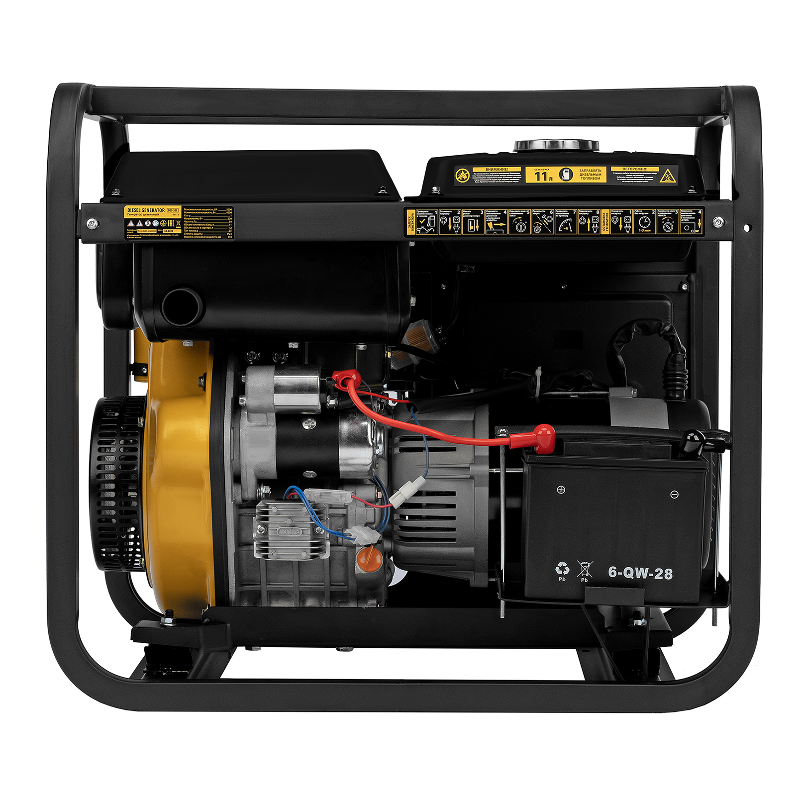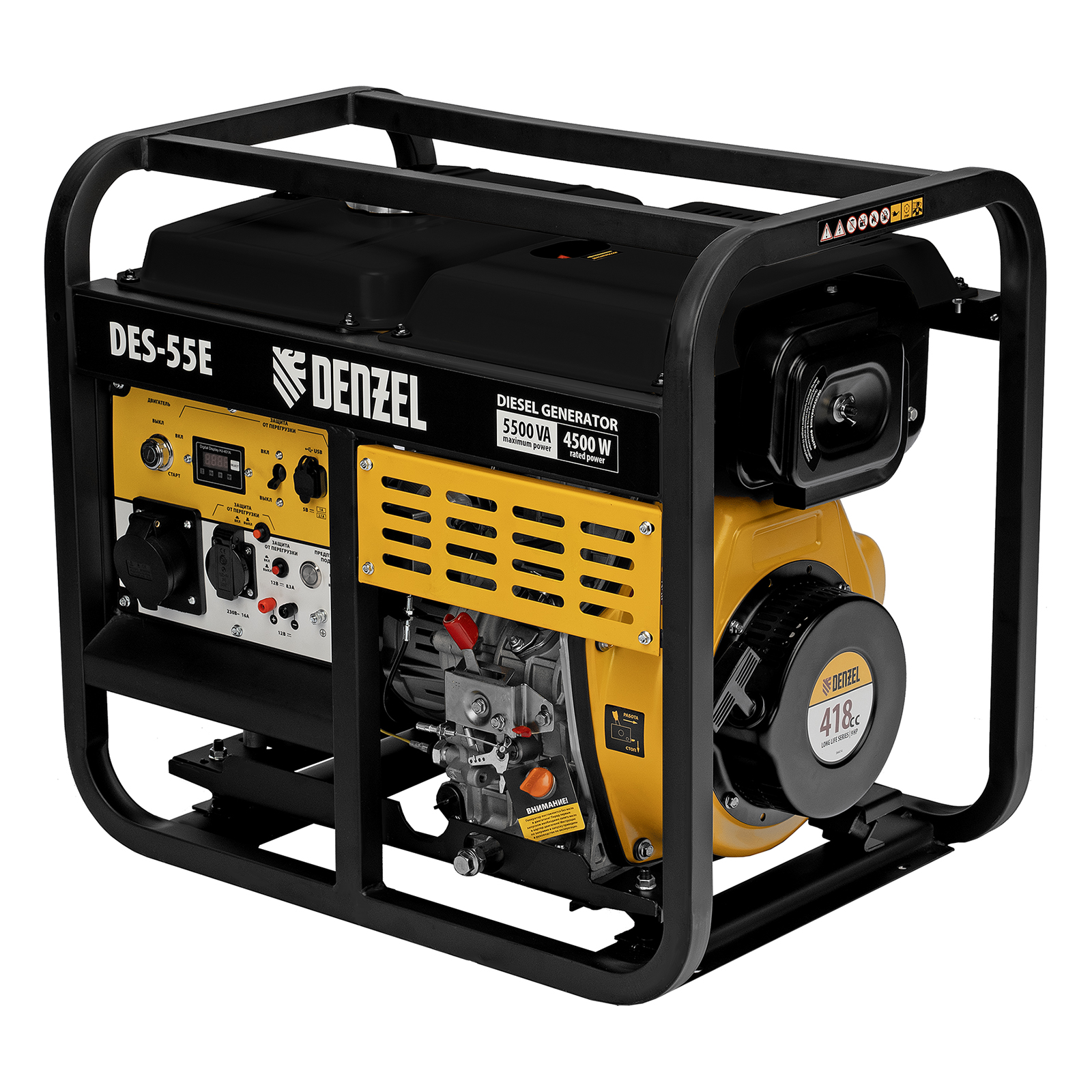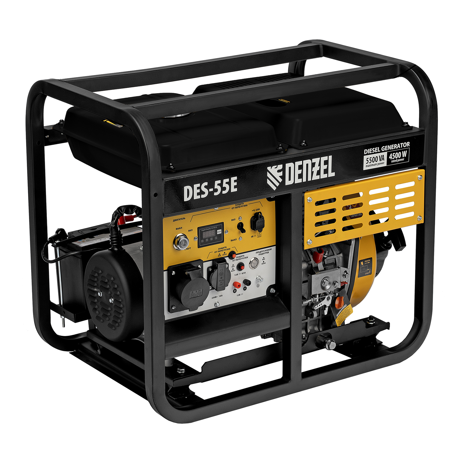 Генератор дизельный DES-55E, 5,5 кВт, 230 В, 11 л, электростартер Denzel