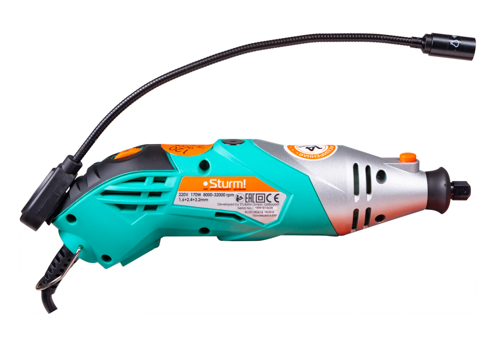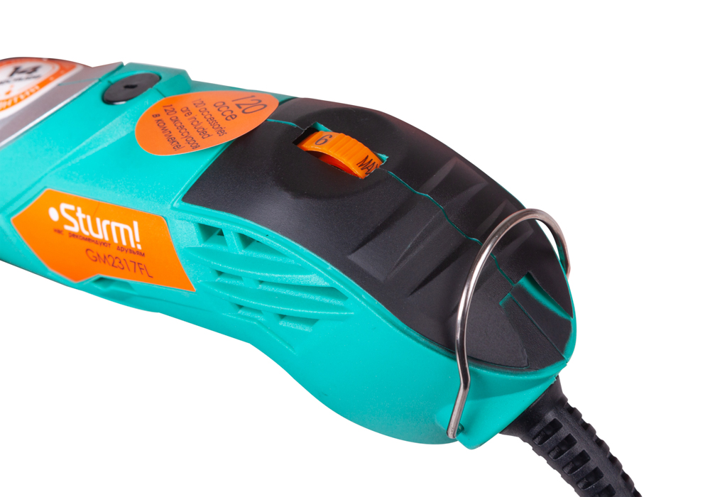 Дополнительный гибкий вал делает применение прибора более легким и точным, кроме того значительно упрощает проведение работ в стесненных условиях или труднодоступных местах, а металлическая скоба позволяет подвесить инструмент для сокращения занимаемого места и повышения комфорта использования.