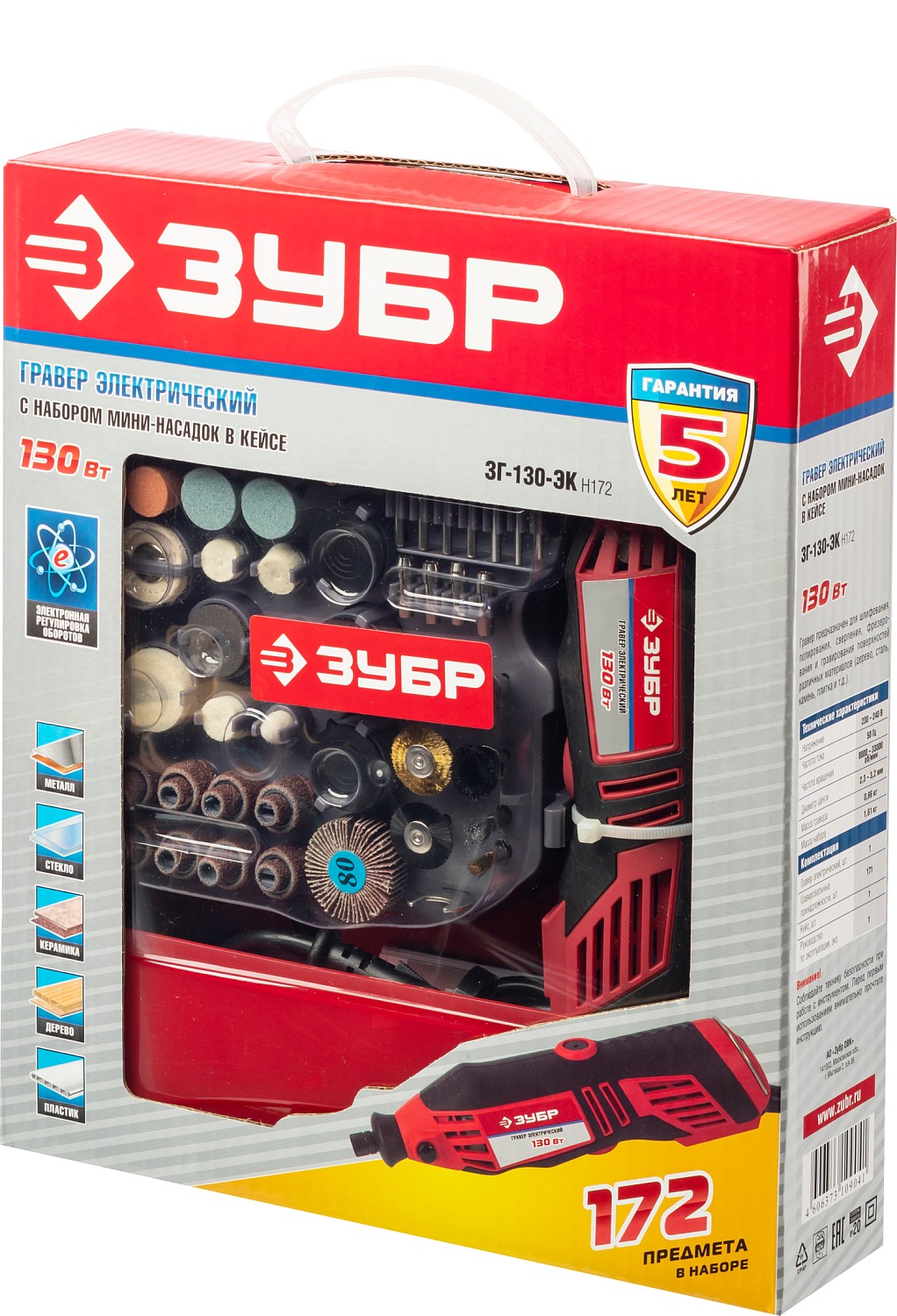 Гравер ЗУБР электрический с набором мини-насадок в кейсе, 172 предмета