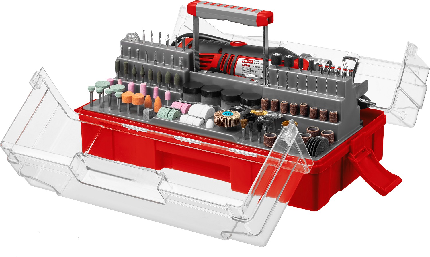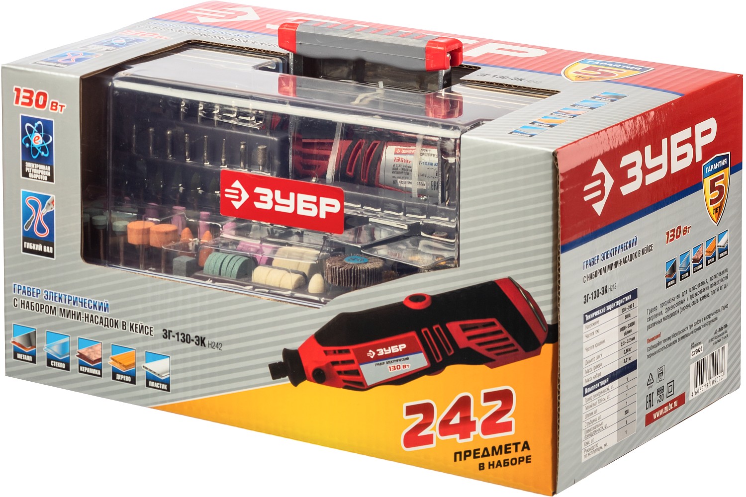 Гравер ЗУБР электрический с набором мини-насадок в кейсе, 242 предмета