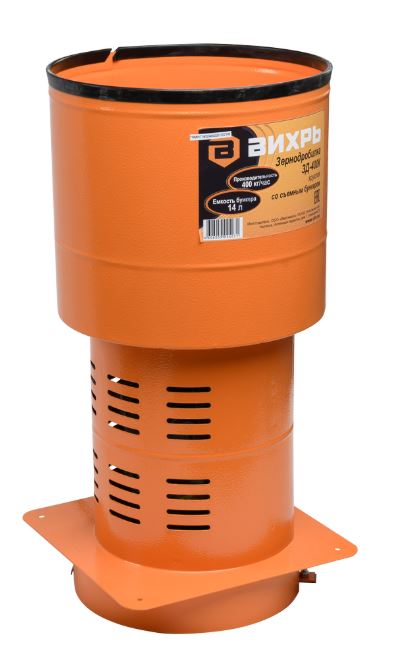 Зернодробилка ВИХРЬ 3Д-400К – это специальный аппарат, мощностью 1550 Вт, применяемый для измельчения зерна при приготовлении сыпучих кормов. Принцип работы устройства базируется на перебивании зерна специальным ножом с последующим просеиванием через сито, благодаря чему удается добиться относительно однородной фракции. Максимальная производительность – 400 кг/ч.