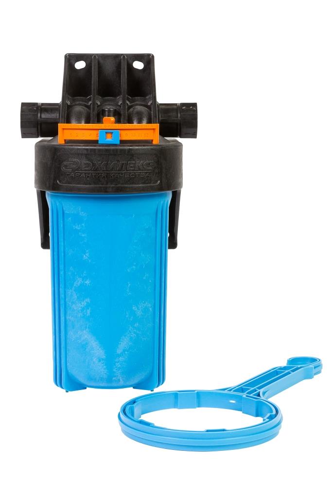 В комплект поставки входит ключ, с помощью которого можно отвернуть колбу от крышки, а также уплотнительная вставка белого цвета для картриджных элементов без сердечника.