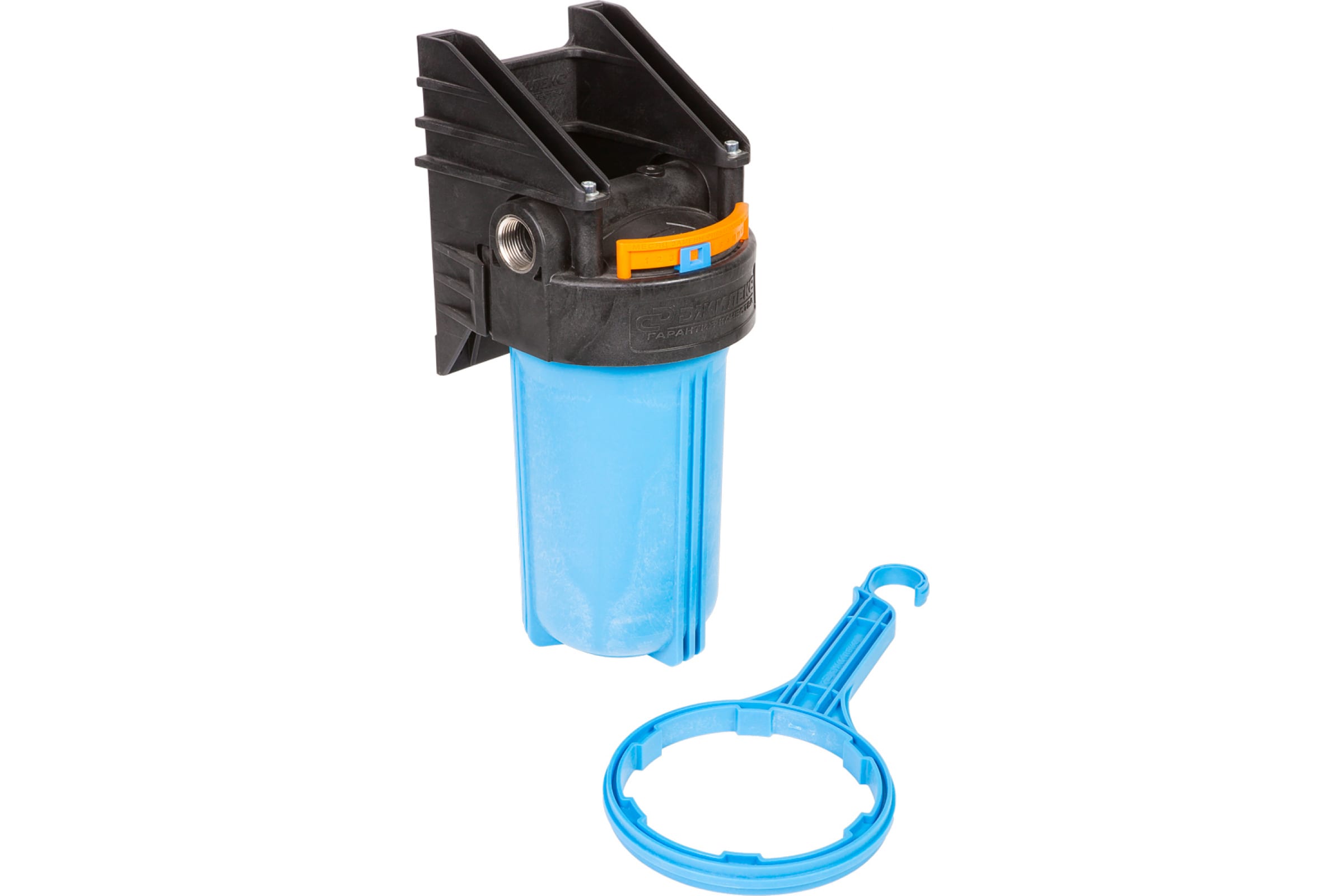 Корпус для картриджного фильтра предназначен для размещения в нём картриджей или фильтрующей засыпки для дальнейшей очистки холодной воды в бытовых условиях. Изготавливается из армлена, прочного материала устойчивого к циклическим нагрузкам и не пропускающего ультрафиолетовые лучи сквозь корпус. Типоразмер колбы – Big Blue 10”.