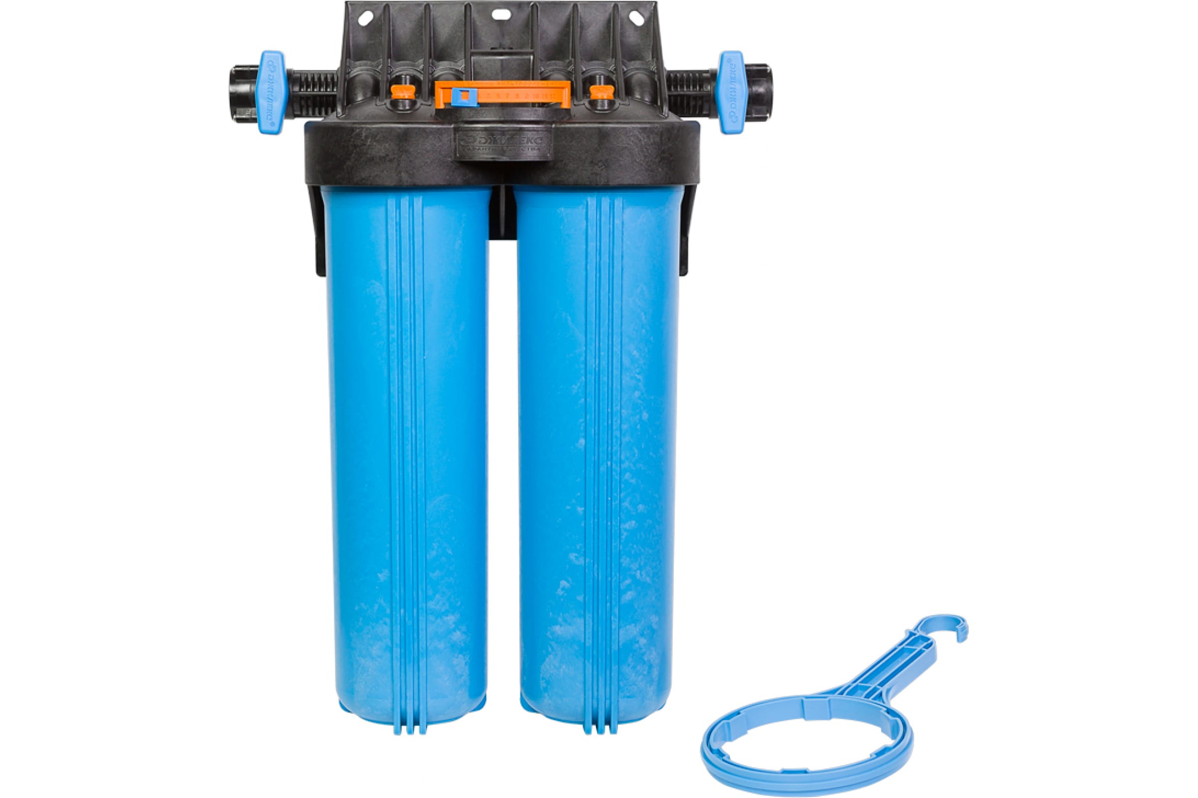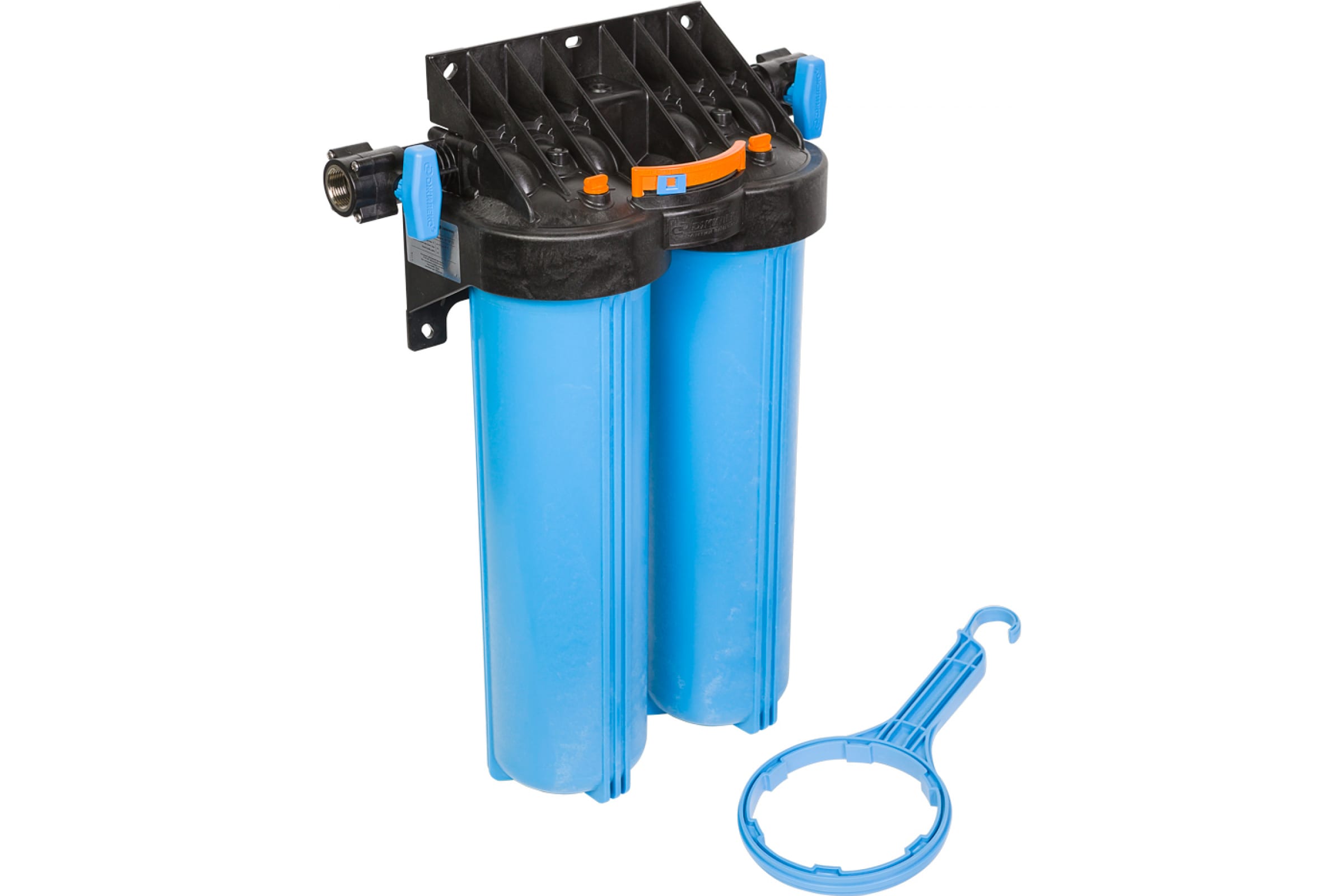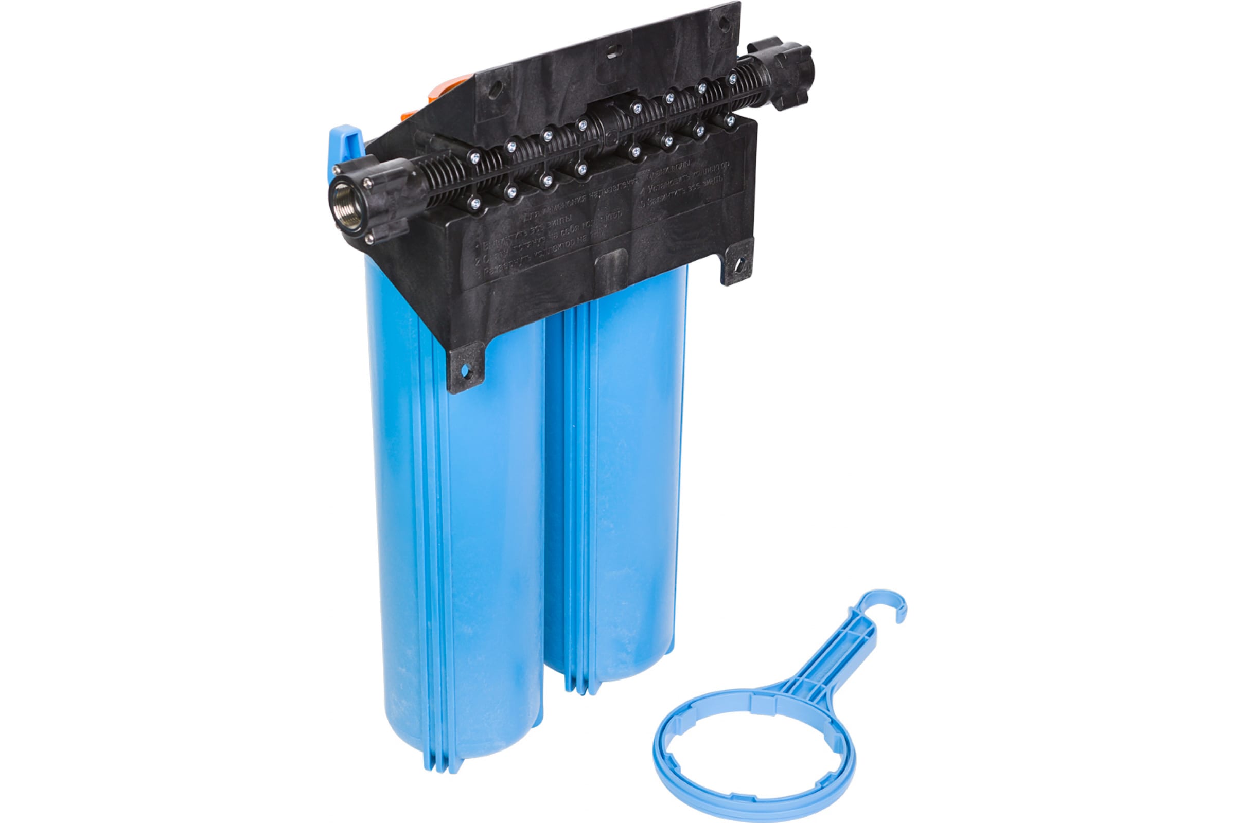 Корпус для картриджного фильтра Джилекс 1 М 20” Т 2 выполнен из прозрачного поликарбоната. Основание корпуса имеет латунные закладные и комплектуется пластиковым кронштейном и ключом.