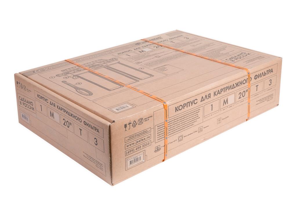 Кронштейн является одним целым с крышкой корпуса фильтра. В корпусе предусмотрены специальные технологические отверстия (пробки) для сброса избыточного давления и слива остаточной воды. В комплект поставки входит ключ, с помощью которого можно отвернуть колбу от крышки, а также уплотнительная вставка белого цвета для картриджных элементов без сердечника. На концах коллектора встроены шаровые краны.