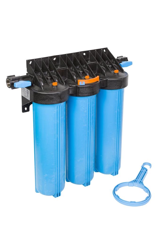Использование трехступенчатых корпусов фильтра рекомендуется в случаях, где необходимы картриджи разных фильтрующих свойств. Это существенно облегчит монтаж и последующее обслуживание системы по сравнению с одинарными корпусами.