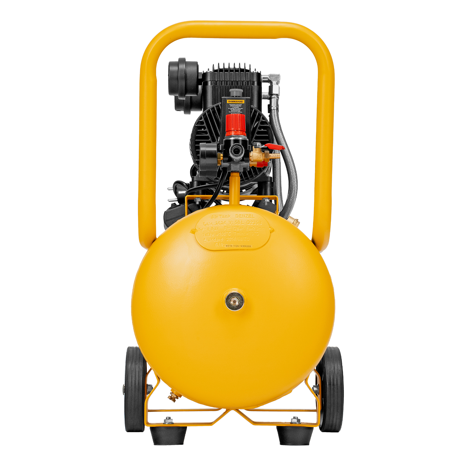 - Мобильность — 2 колеса и транспортировочная рукоятка упрощают перемещение компрессора по рабочей зоне.