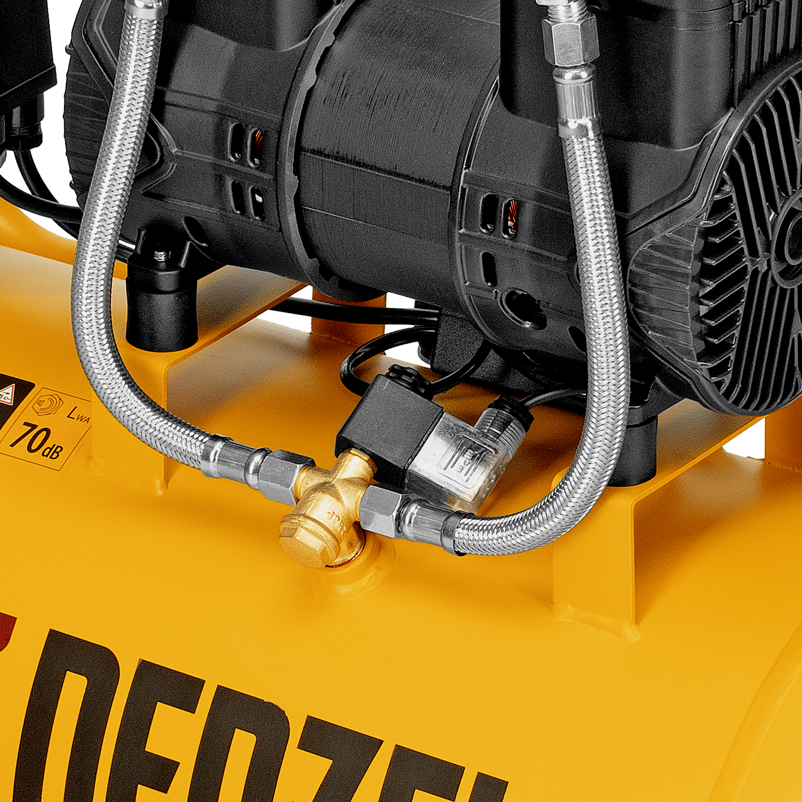 Безмасляный малошумный компрессор Denzel DLP-1500/50 58143 мощностью 1,5 кВт и производительностью 250 л/мин, с ресивером объемом 50 л, оснащен двигателем со скоростью вращения 2850 об/мин. Предназначен для обеспечения пневмоинструмента сжатым воздухом. Для работы компрессора не требуется масло, поэтому он подходит для проведения покрасочных работ и продувки электронных компонентов. Прямой привод обеспечивает максимально эффективную работу и высокую производительность. Благодаря низкому уровню шума эксплуатация компрессора не вызывает ощущение дискомфорта.