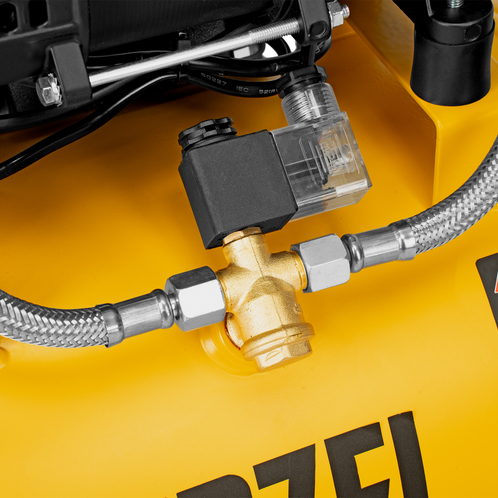 - Удобный контроль работы — компрессор оснащен 2 манометрами для отслеживания давления в ресивере и пневмолинии