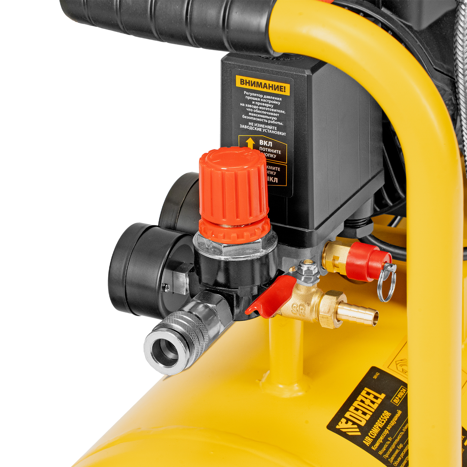 - Регулировка давления — можно установить необходимый уровень в зависимости от подключаемого инструмента.